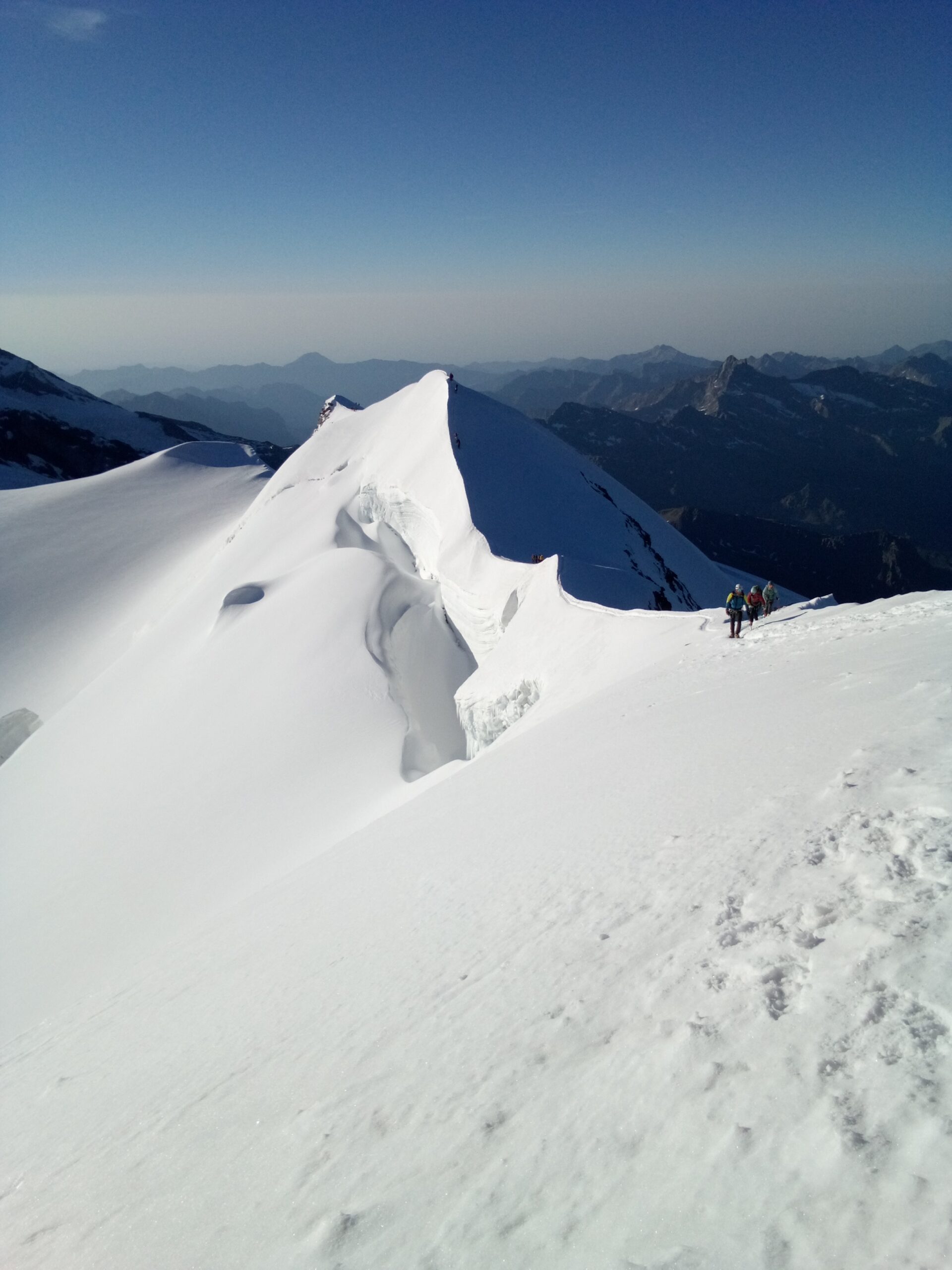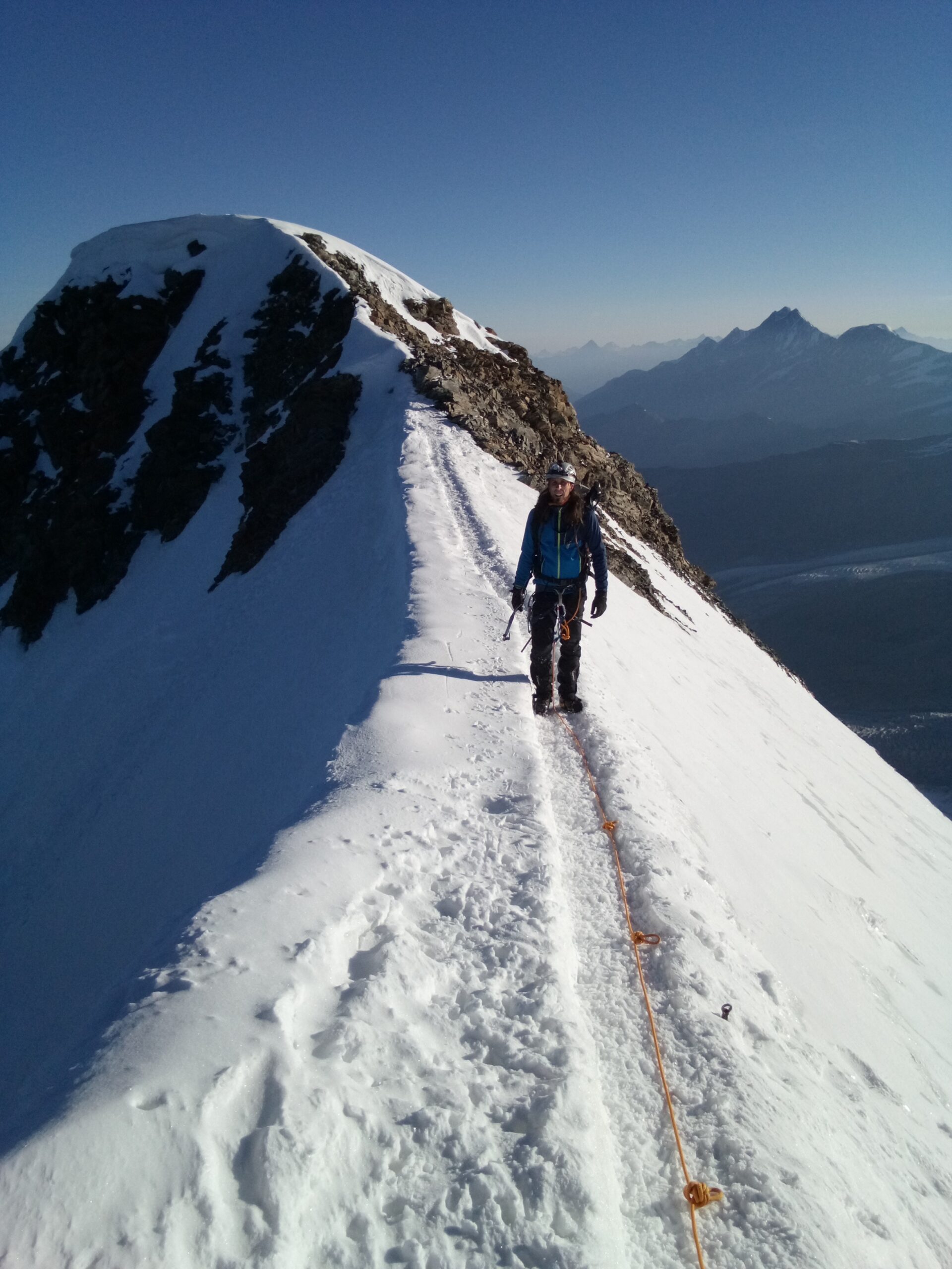 Si supera la terminale e si raggiunge la cresta molto aerea che in breve a dx porta alla vetta.