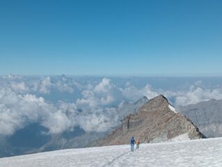 Alloggio Al Rifugio Sella ottimo, un po’ caro ma diciamo compensato dalle opere di ristrutturazione fatte l anno scorso che rendono Il rifugio molto piu’ accogliente, la Gita che dire… e’ Magnifica come sempre…ma piu’ difficile rispetto Al passato a causa del caldo di quest anno I Punti critici ( a livello di alpinismo base ) con Il caldo Sono Tre … Ghicciaio Felik subito salendo molti piu’ crepacci da aggirare , alcuni da saltare Al ritorno, Il pendio Al colle e’ di ghiaccio vivo , un po’ delicato Il passaggio vicino alle roccette, e attenzione anche Alla cresta che gia’ alle 9 . 30 inizia a mollare pericolosamente occhio a dove si mettono I piedi, almeno due crepacci trasversali , conviene dove si puo’ stare leggermente piu’ Bassi possibilmente dove non ha preso sole, partire presto alle 10 e’ meglio essere gia’ fuori dalle difficilta’.
