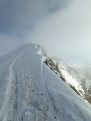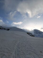Traccia evidente. Il mancato rigelo notturno ha reso l’ascesa un po’ più complicata del previsto.