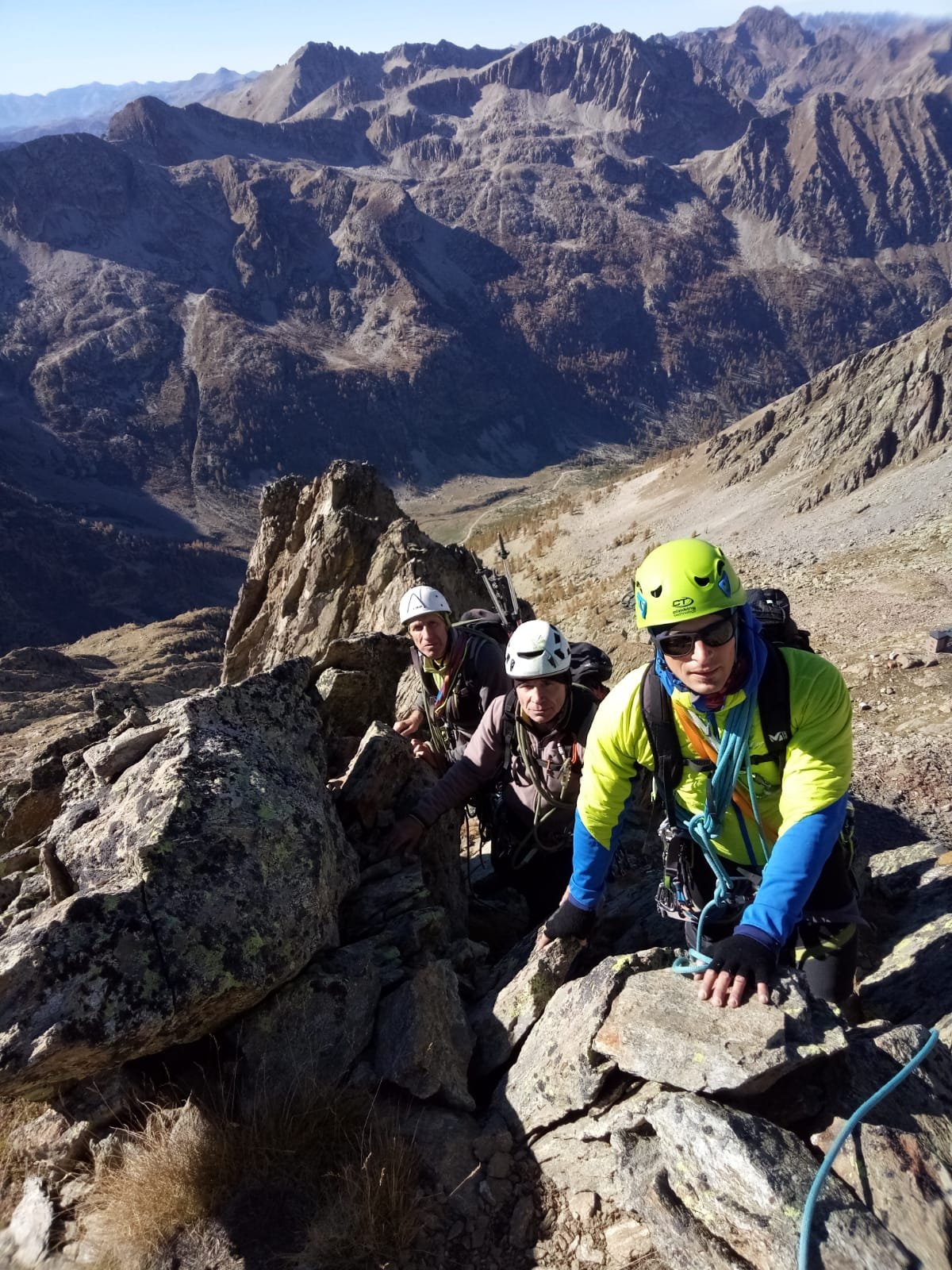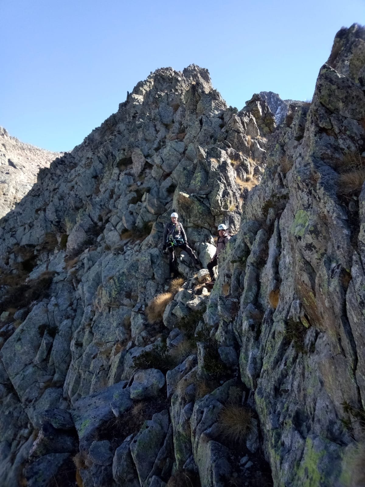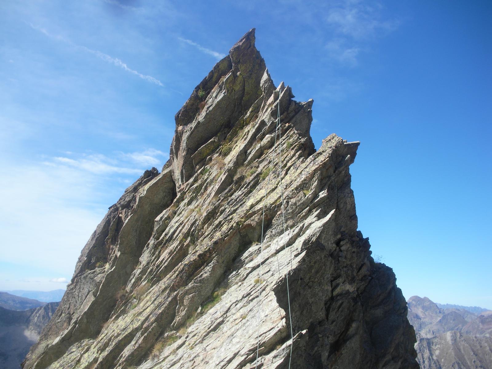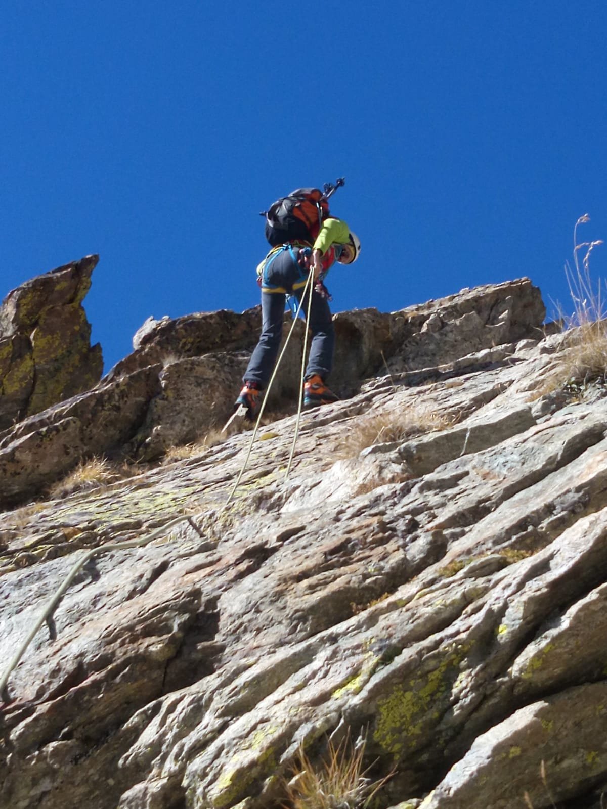 Per scendere dalla Punta Berardo-Alloa alla forcella Varrone c’è una sosta (cordino+fettuccia) per una doppia da 15 m.