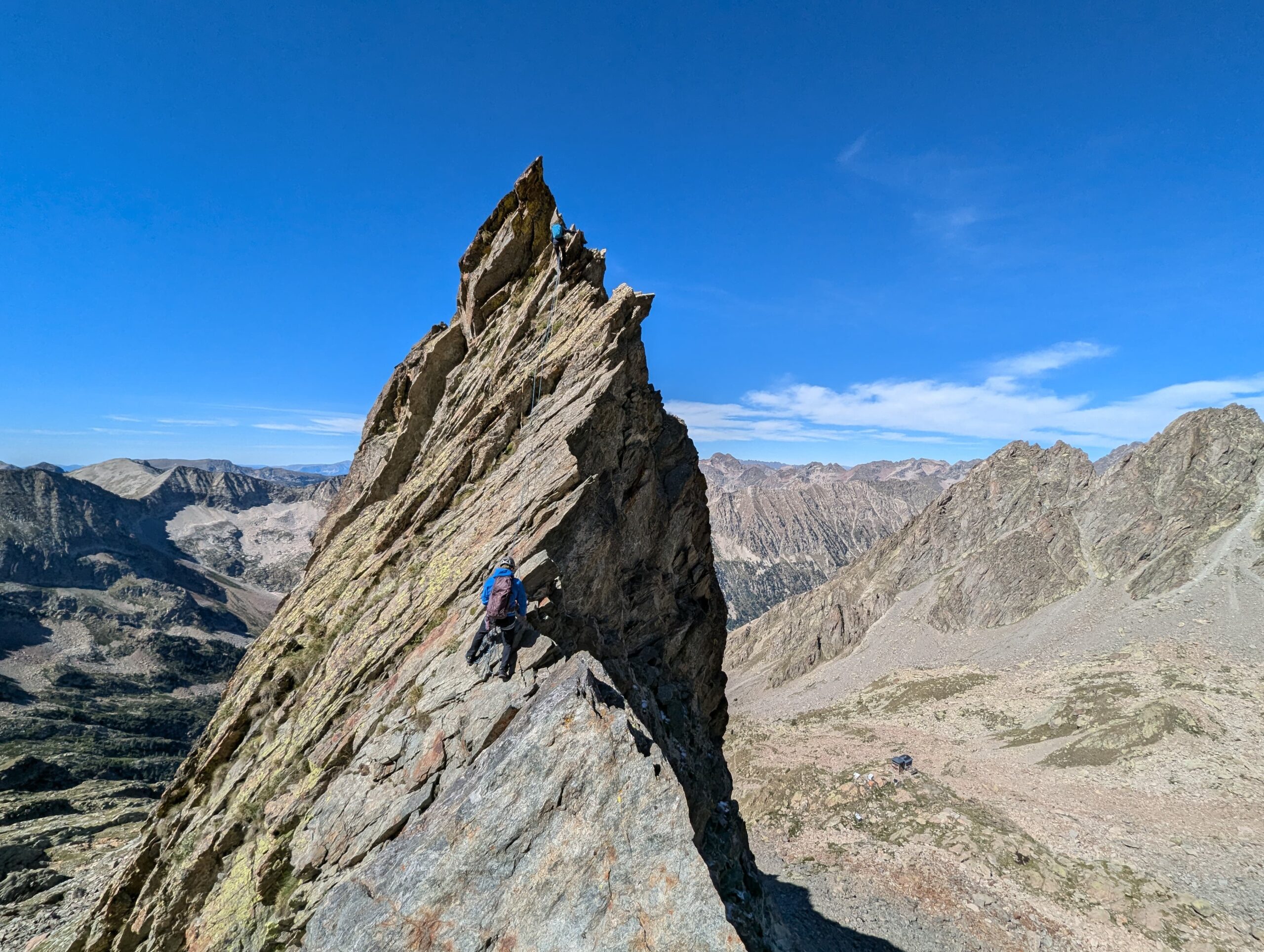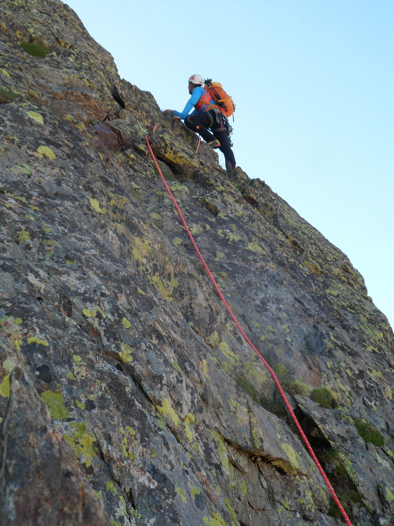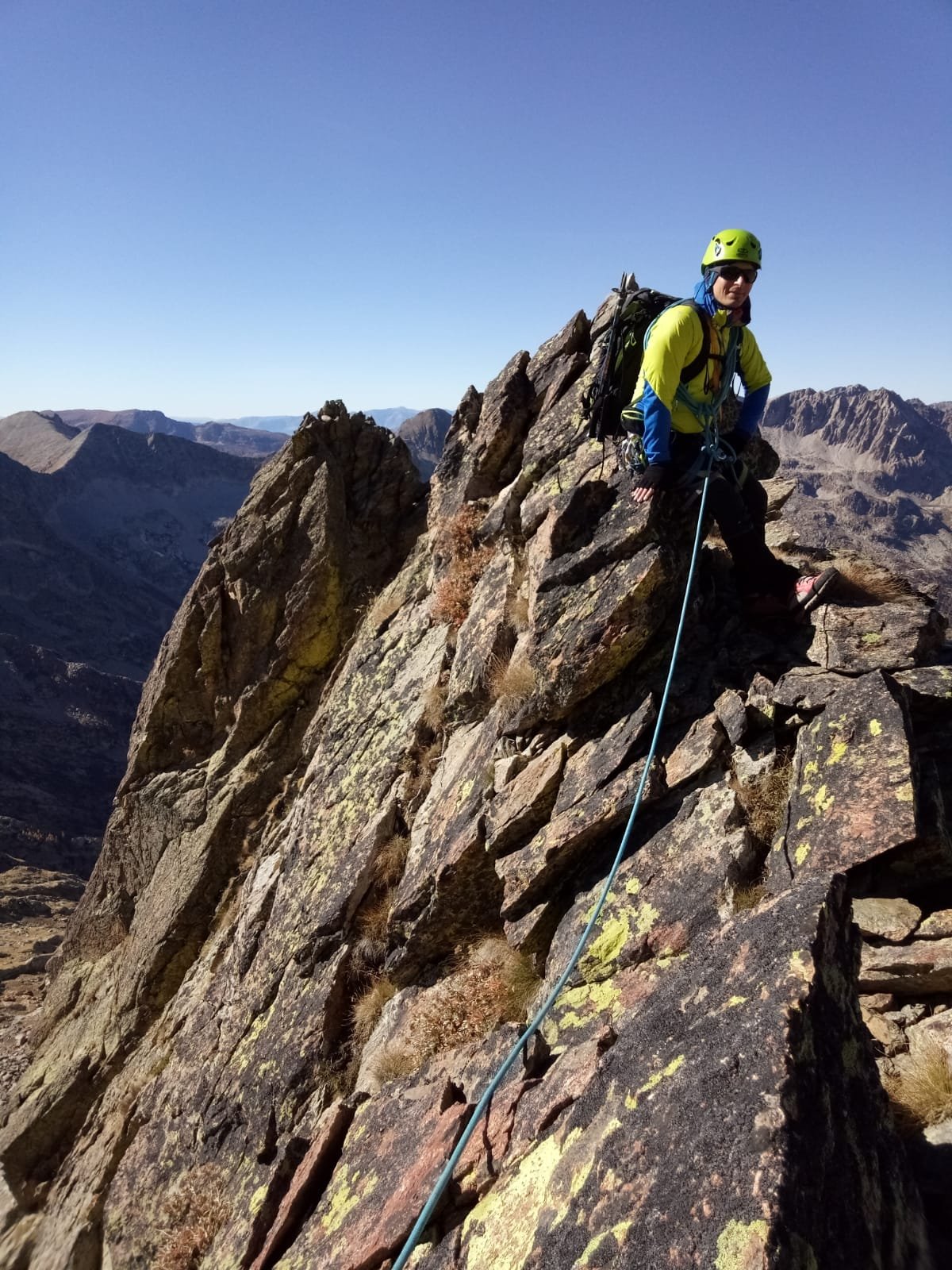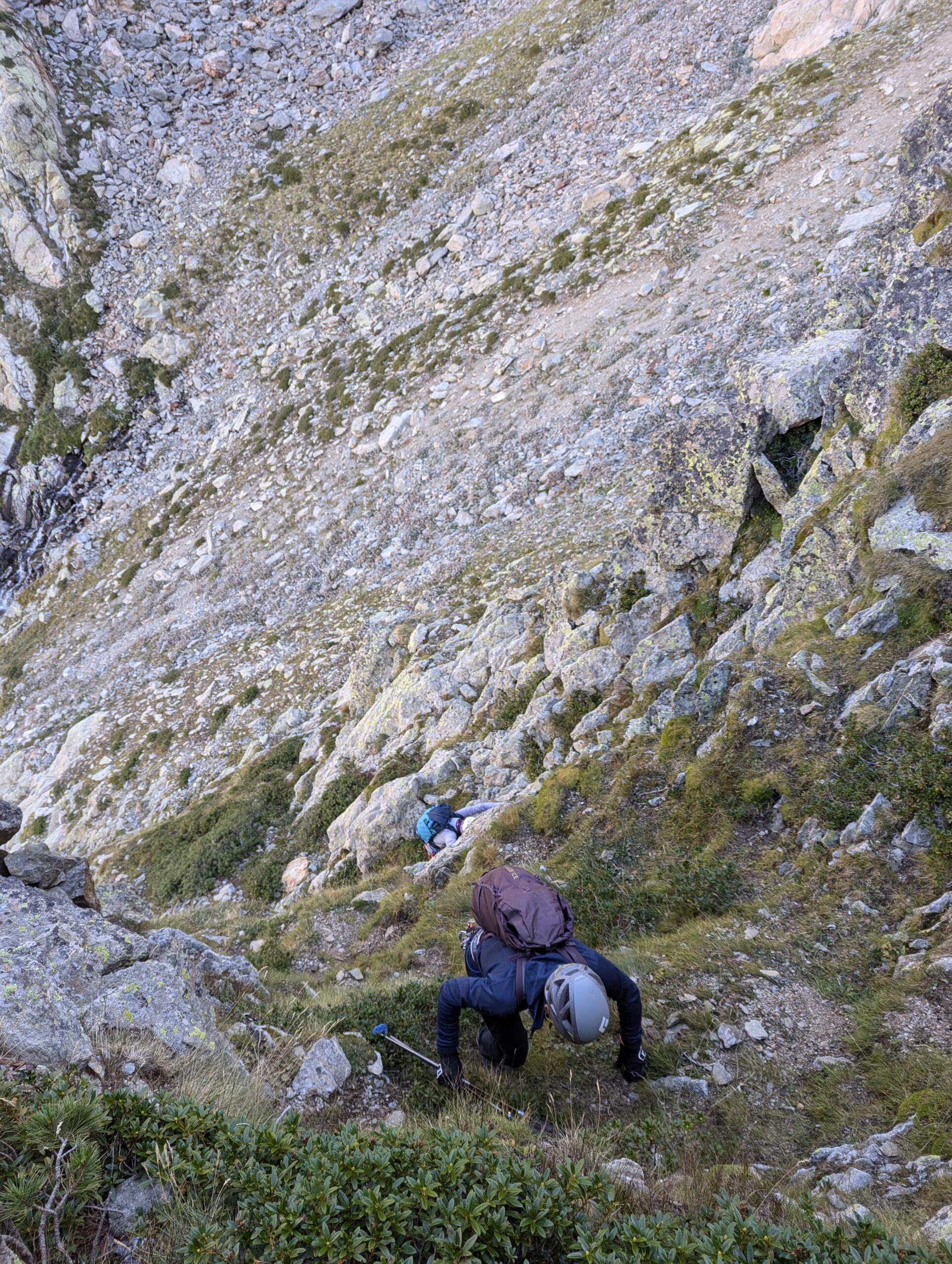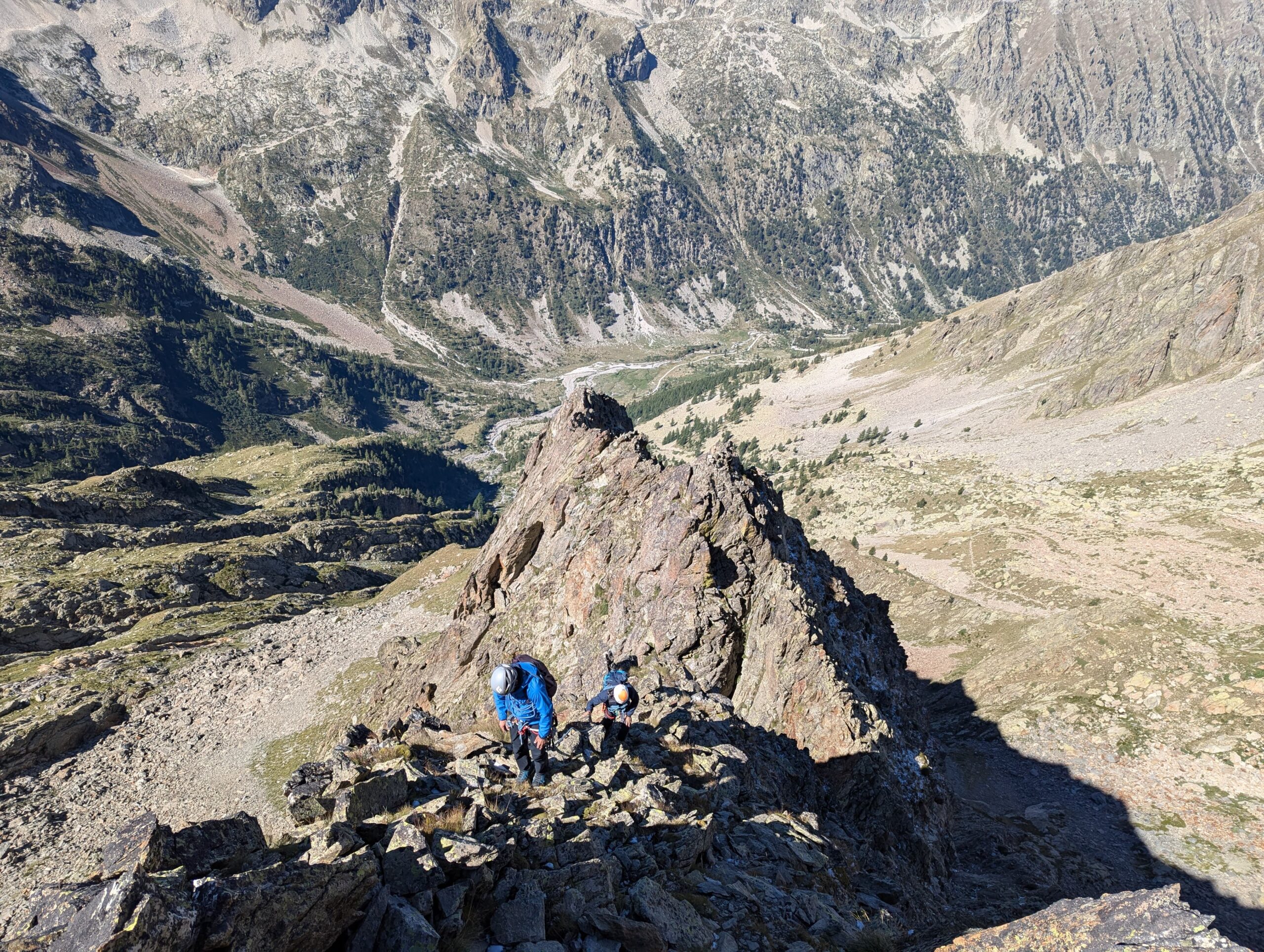 Per scendere dalla Punta Berardo-Alloa alla forcella Varrone c’è una sosta (cordino+fettuccia) per una doppia da 15 m.