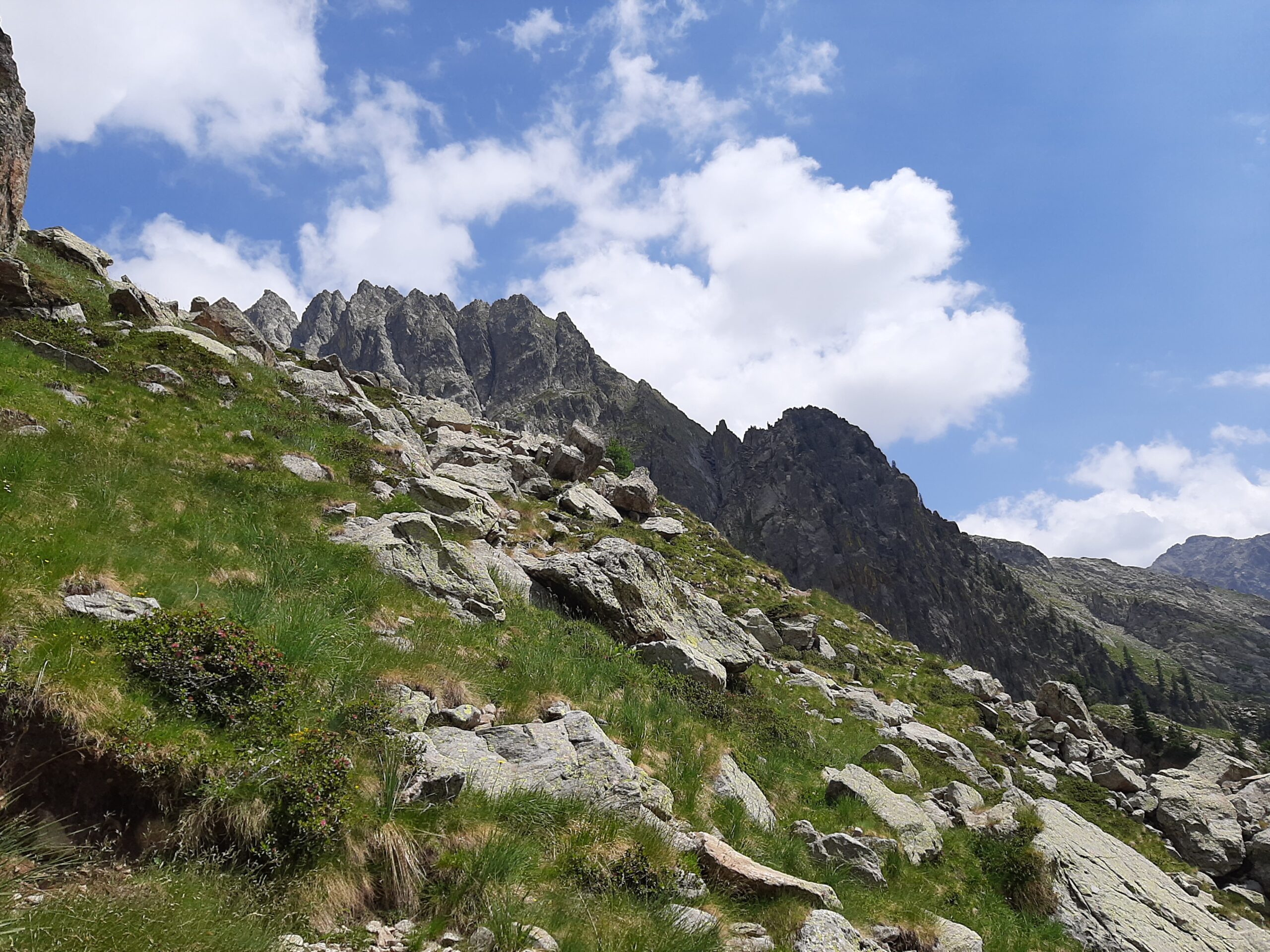 Per la discesa si raggiunge il sentiero che dal Lago di Nasta torna al rifugio Remondino.