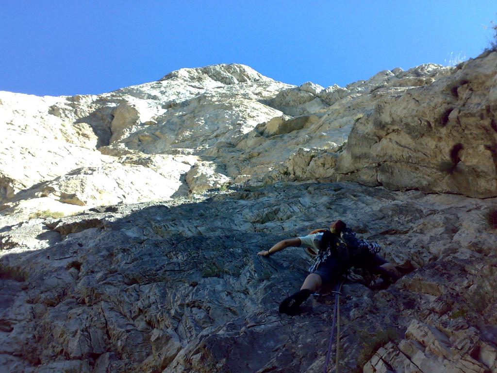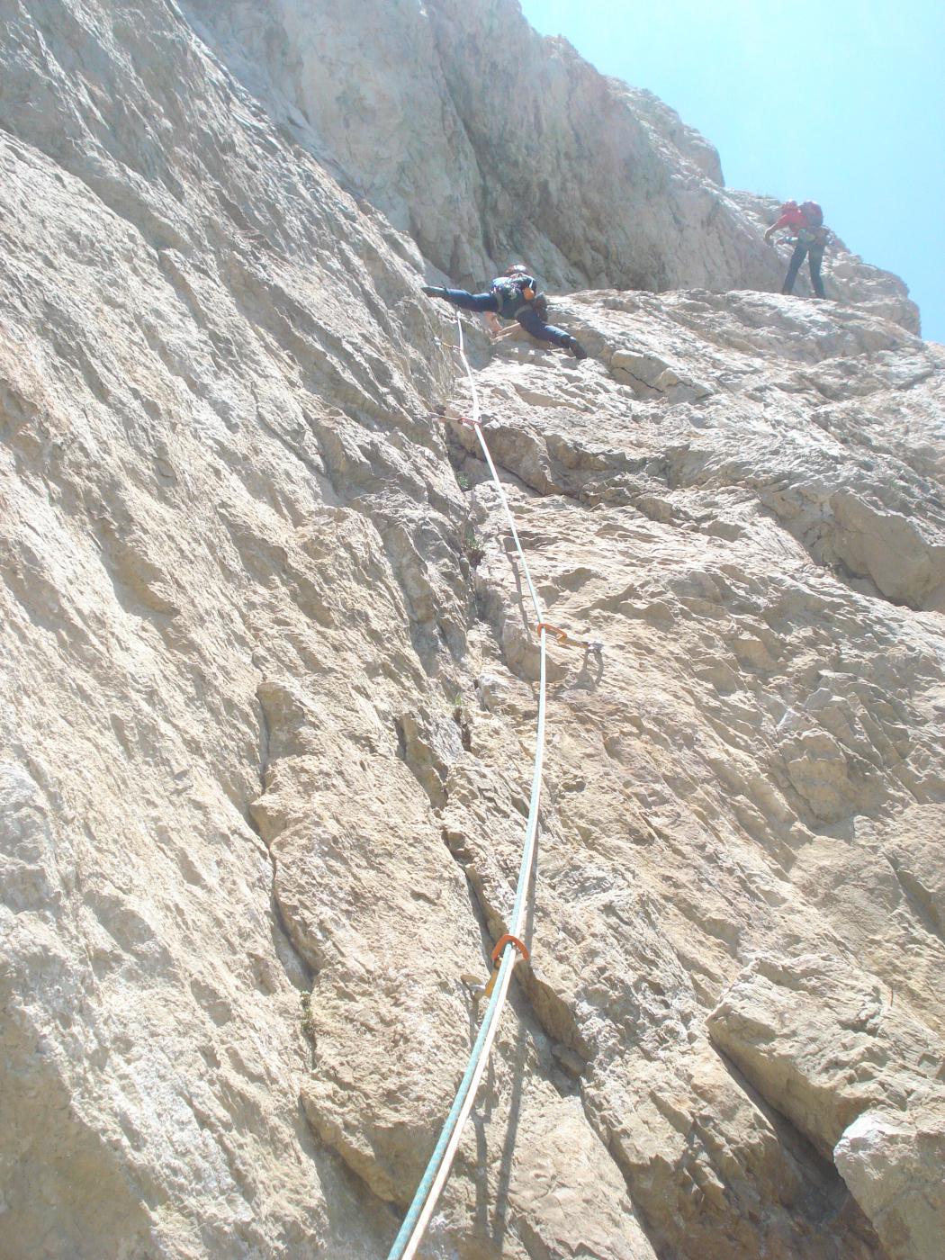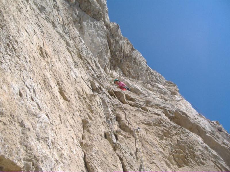 - L6 – 6a, 40m – Diedro-camino, al termine del quale si traversa decisamente verso destra su cengia (allungare le protezioni, eventualmente sfalsare le corde). Infine bell’arrampicata su muro verticale.