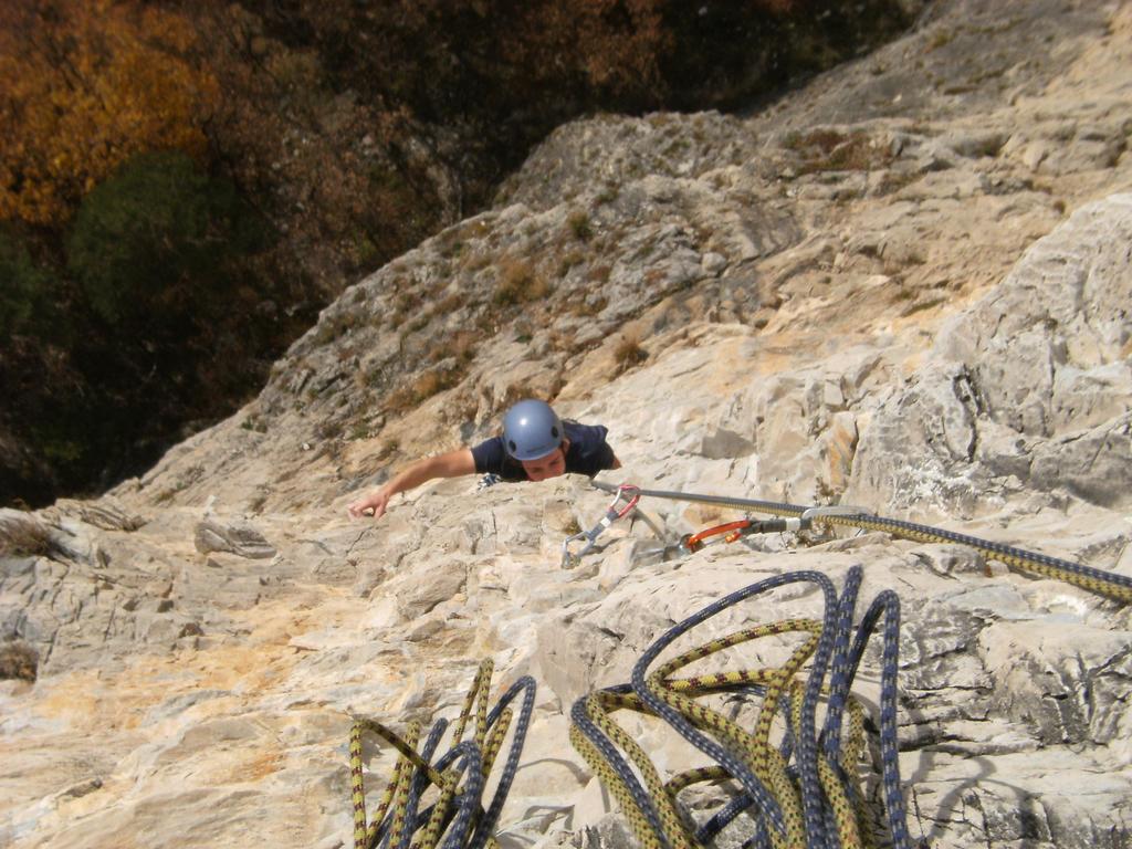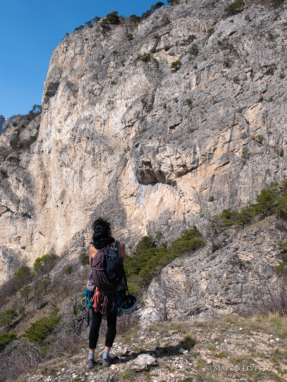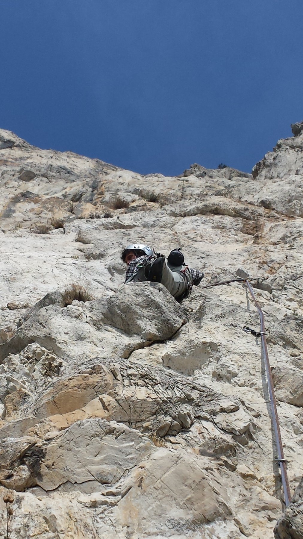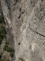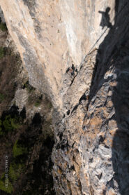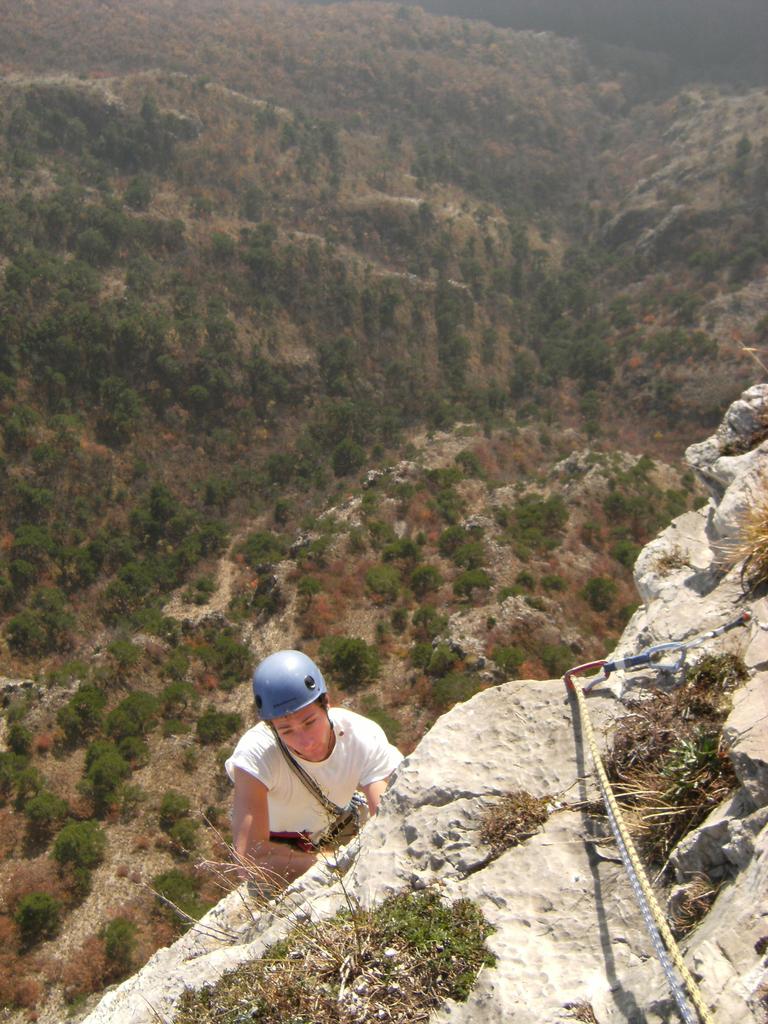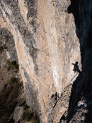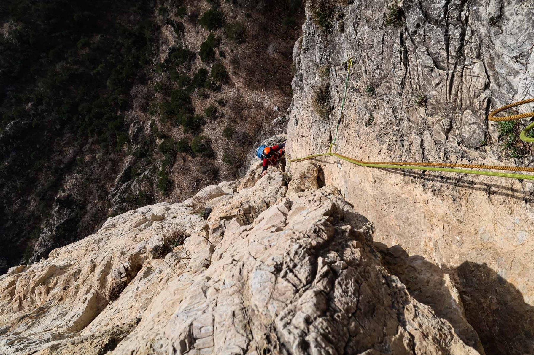Conoscendo la parete è possibile calarsi in doppia, ma uscendo in cima è molto comodo e veloce il sentiero.