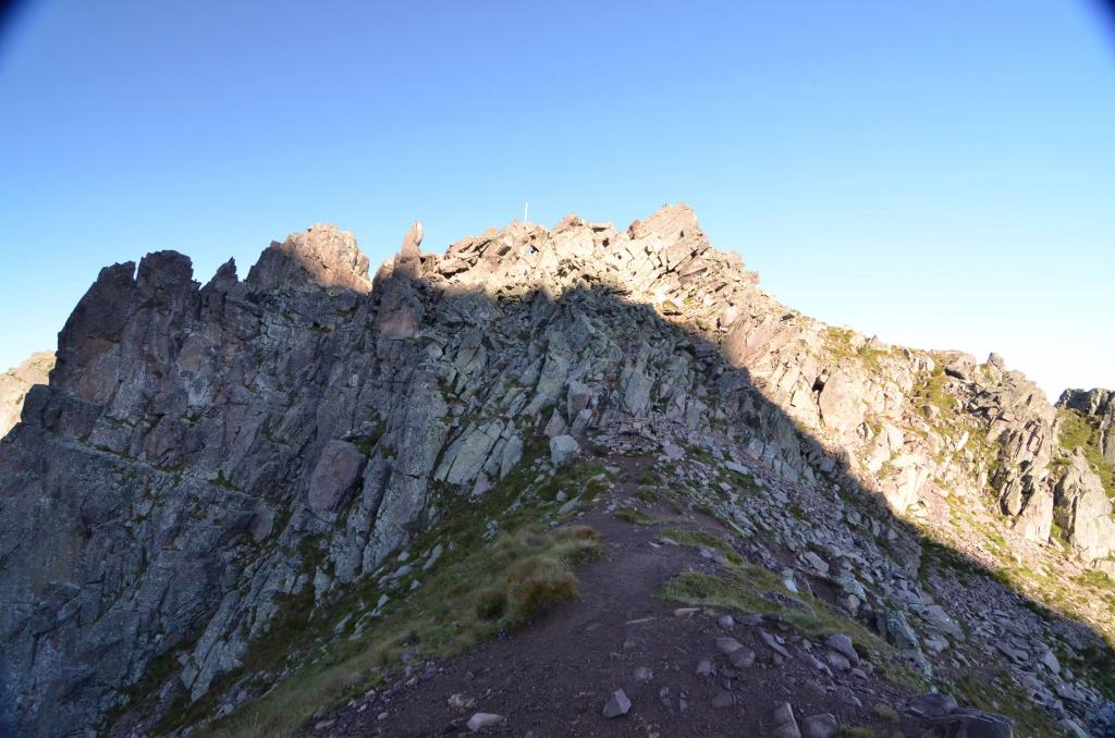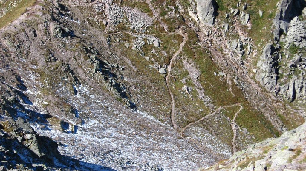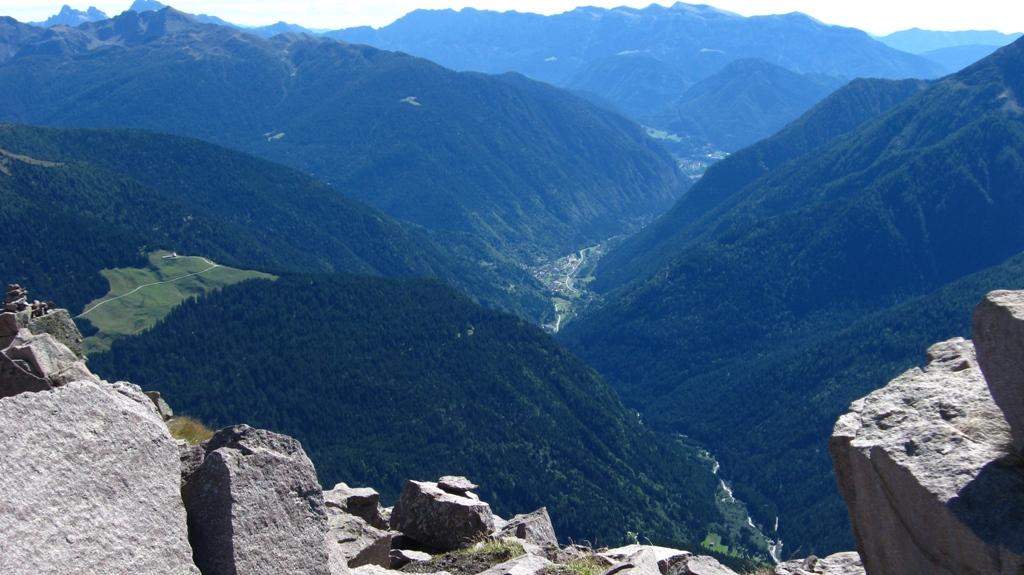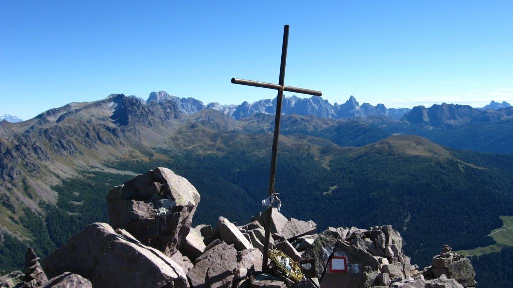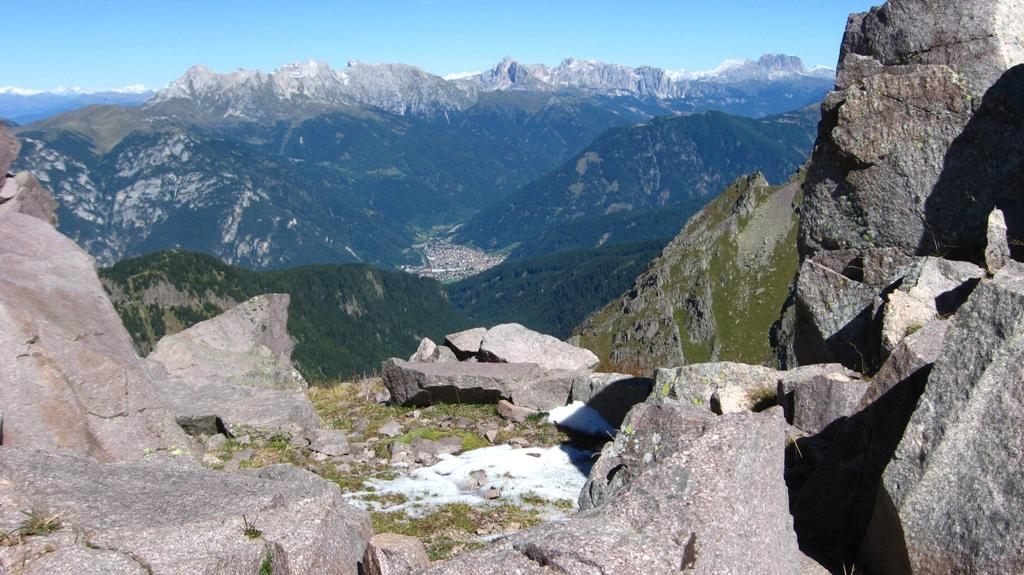 Giunti in cima la visuale sul Lagorai è fantastica! Il ritorno è stato fatto per la via Austriaca il sentiero sassoso scende lungo un canalone (pare di camminare sugli scogli) e si alterna a tracce di sentieri ai vecchi camminamenti. Dopo una ripida discesa si giunge ad un bivio che a destra porta alla Forcella Cardinal e a sinistra si ritorna al Passo Sadole.