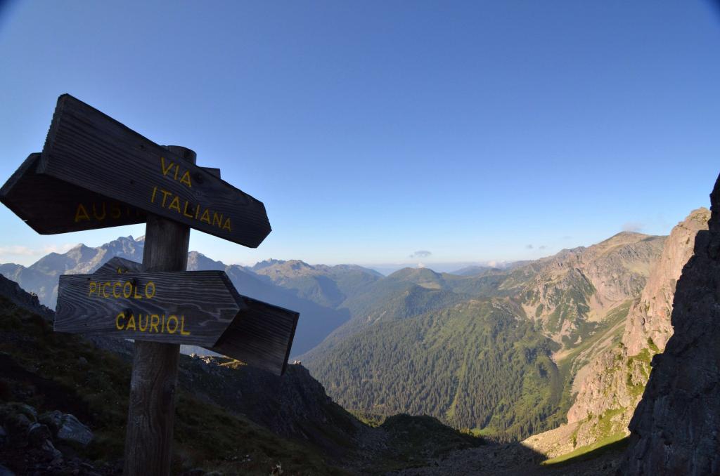 Infine si arriva alla Selletta Carteri dove ci sono le indicazioni per il Piccolo Cauriol, la via Austriaca e l’agognata vetta. Si sale per un sentiero ripido tra sassi fino alla vetta. IL sentiero è ben marcato da ometti e pitture anche deviando involontariamente è facile ritrovare la retta via.