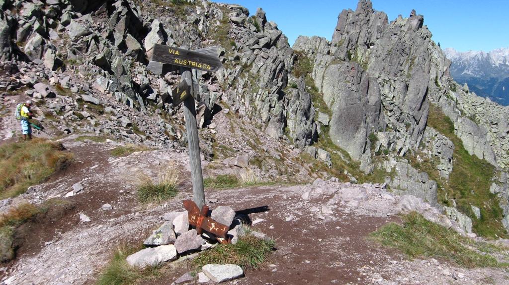 Da li si percorre una comoda e ampia carreggiata dentro la val Sadole e pian delle Maddalene fino ad una sorgente. Da li il sentiero inizia a salire fino a Passo Sadole (2066mt) qui c’è il bivio dove scegliere tra la Via Italiana e la Via Austriaca (al momento della gita non era presente l’indicazione ma si può seguire quella per la Forcella del Cardinal).
