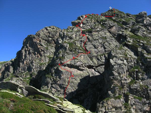 La via è parallela alla picapere ma parte dal salto superiore raggiungibile con il primo tratto della ferrata oppure con i primi 2 tiri della picapere.