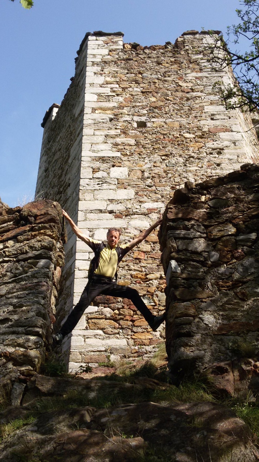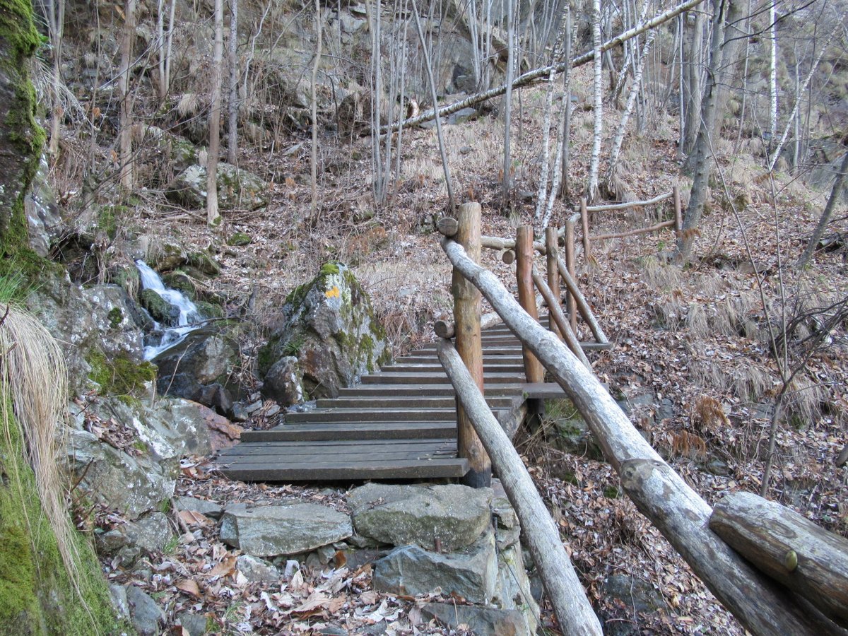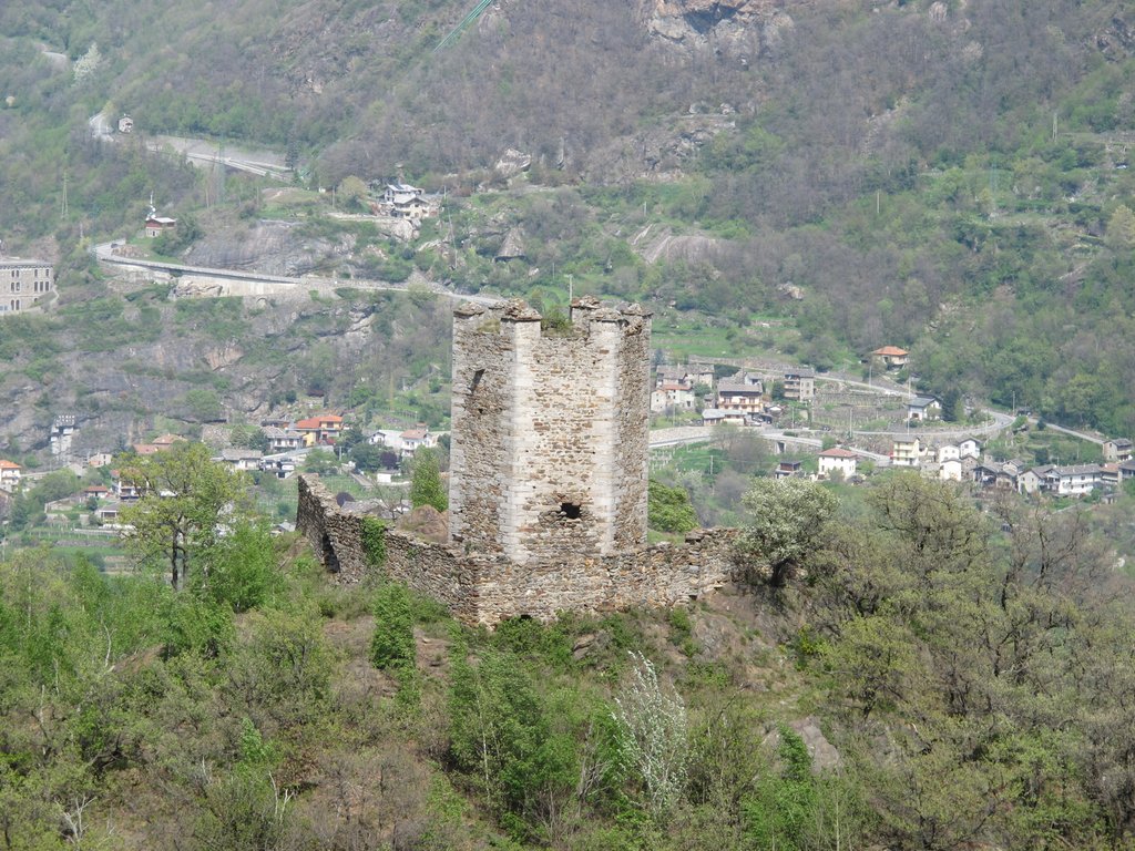 Dal parcheggio di Pramotton si segue la destra orografica del canale e quindi della Dora fino a trovare la palina che indica linizio del sentiero n.1. Lo si segue e dopo poco, quota 553 vale la pena di fare una breve deviazione per visitare la Tour de Pramotton (Bellagarda).