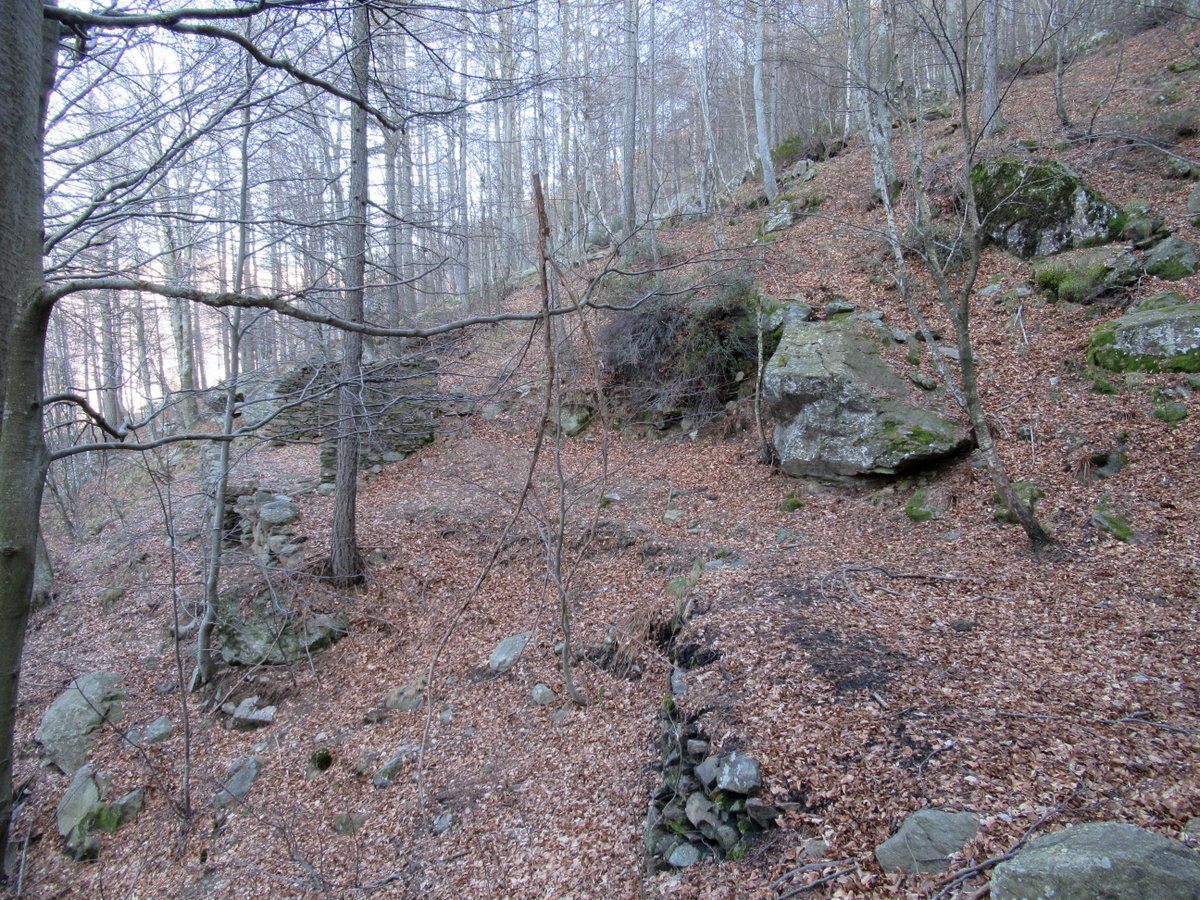 Si riprende quindi il sentiero che porta al bel pianoro di S.te Marie Magdeleine 1041 poi a Planas Pianfey Baraton, poco dopo Baraton si imbocca il sentiero n.2 che porta a Liouz 1366 e quindi alla Cavanna d’ Rietti 1726 proprio sotto il cosidetto Altare delle incisioni rupestri del Bec Renon.