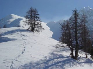 gita con bella farina che raggiunge i 40cm nella parte alta del vallone(anche di più nei tratti accumulati). Discesa dal ripido pendio finale seguendo la cresta in quanto valutato pericoloso per neve accumulata ed instabile.
