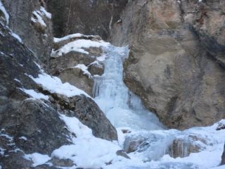 UNA VERA SORPRESA ,TUTTA LA CASCATA E’ FORMATA PER UNA SALITA SICURA.IL GHIACCIO NON E’ ABBONDANTE MA SUFFICIENTE,CI SI PROTEGGE BENE .PRIMO TIRO UN PO’ DELICATO E SOTTILE MA SCALABILE,BUONE PROTEZIONE PRIMA DELLA COLONNINA……….IL RESTO SI VA TRANQUILLI.OGGI MENO 12 ED IN QUALCHE PUNTO COLAVA QUINDI SI GONFIERA’ PRESTO.A CEILLAC UNICA FATTIBILE LE ALTRE IN FORMAZIONE.