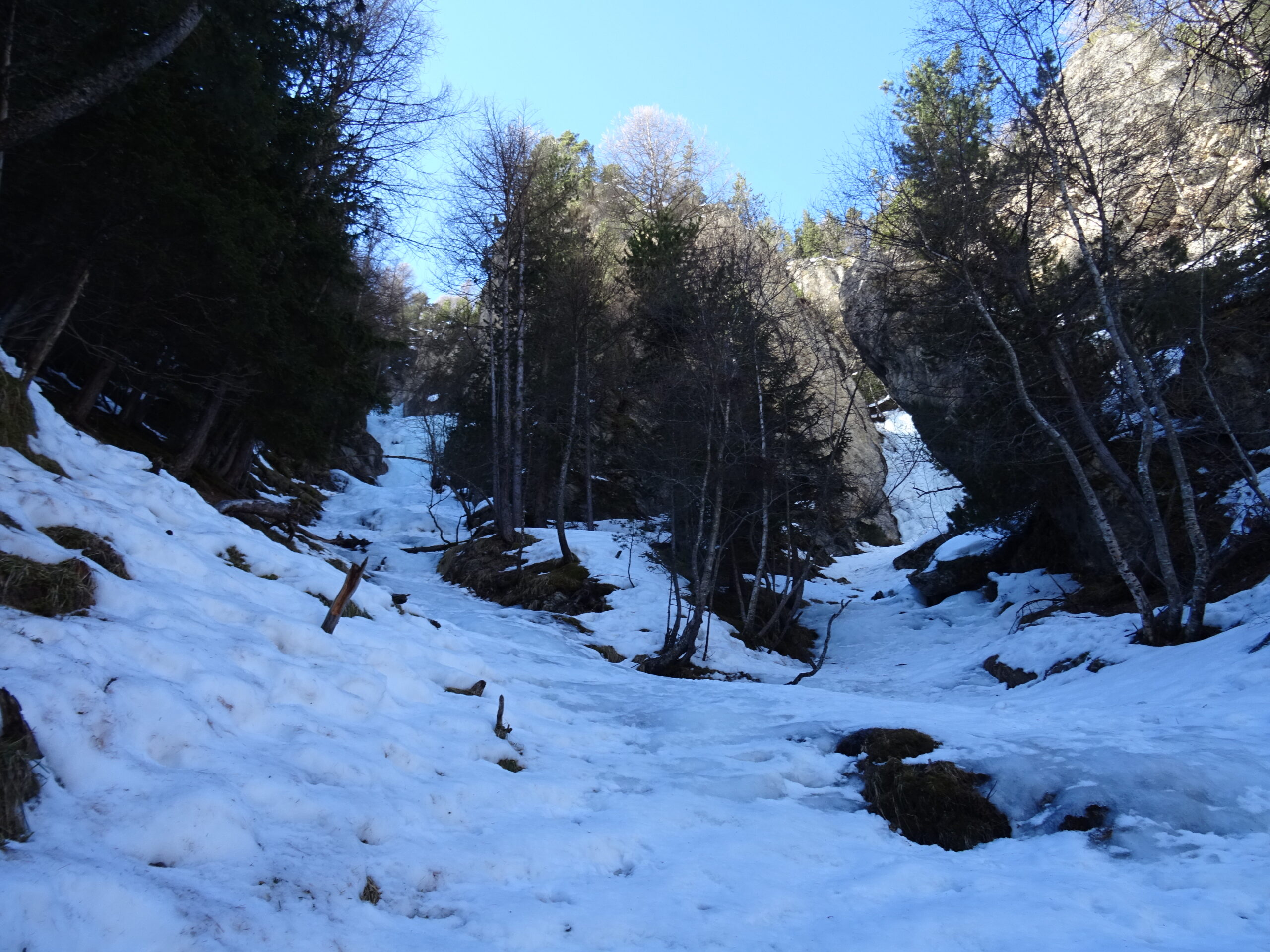 Avvicinamento for dummies molto veloce. Saliti slegati i primi tiri, fino al muro dopo il bivio con la Y droite: così facendo ne vengono fuori 3 tiri. Molto divertente quello “chiave” del bloccone coincée: salendolo a sx il grado 3+ è onesto, se si passa a dx secondo me non si va oltre il 3 in tutta la cascata (ma direi che la sovragradazione qui la fa da padrona). Cascata lavorata, ghiaccio ancora abbondante e plastico, un piacere da scalare. Un po’ di doccia sul tiro chiave passando a sx. Uscita un po’ delicata per ghiaccio in esaurimento. Nessuno sulla cascata ma condizioni oserei dire ottime.