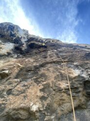 e dove si arriva ai chiave c’è sempre quel provvidenziale aiutino (il 6b obb in questo caso) che fa proseguire la via senza problemi, e ne consente la libera in sicurezza per chi vuole spingere.