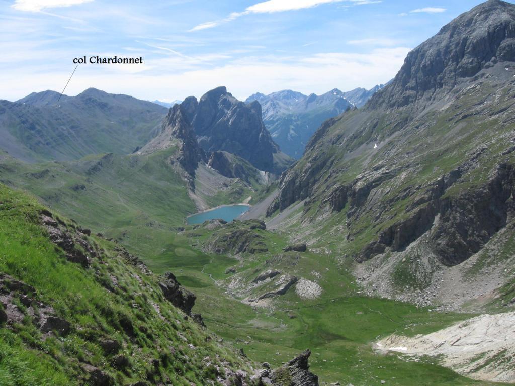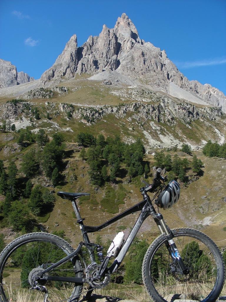 Proseguire per la strada asfaltata fino al Ref. de Laval da dove inizia la sterrata fino al Ref. des Drayeres, poco dopo il sentiero diventa solo a tratti pedalabile, fino a raggiungere i laghi: Claree, Rond e Ban, aggirare quest’ultimo e voltare a sn per raggiungere il colle dei Cerces. Dal colle scendere al lago dei Cerces e risalire, sempre con qualche tratto di portage al col Ponsonnière, scendere sulla sn fino a toccare quota 2209 mt. da dove parte il sentiero che raggiunge il col Chardonnet (2638 mt.) prendere in direzione di quest’ultimo e tutto in portage arrivare al colle. Discesa poi con qualche tratto non ciclabile fino al ref. du Chardonnet, poi fino a Fontcouverte dove si ritrova la strada asfaltata dell’andata.