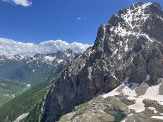 Salita di montagna in questo bellissimo angolo di val Maira. La roccia, se si segue la linea degli spit, è sempre buona, fare comunque attenzione a ciò che si tira.