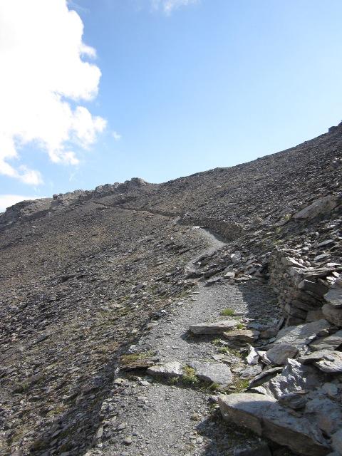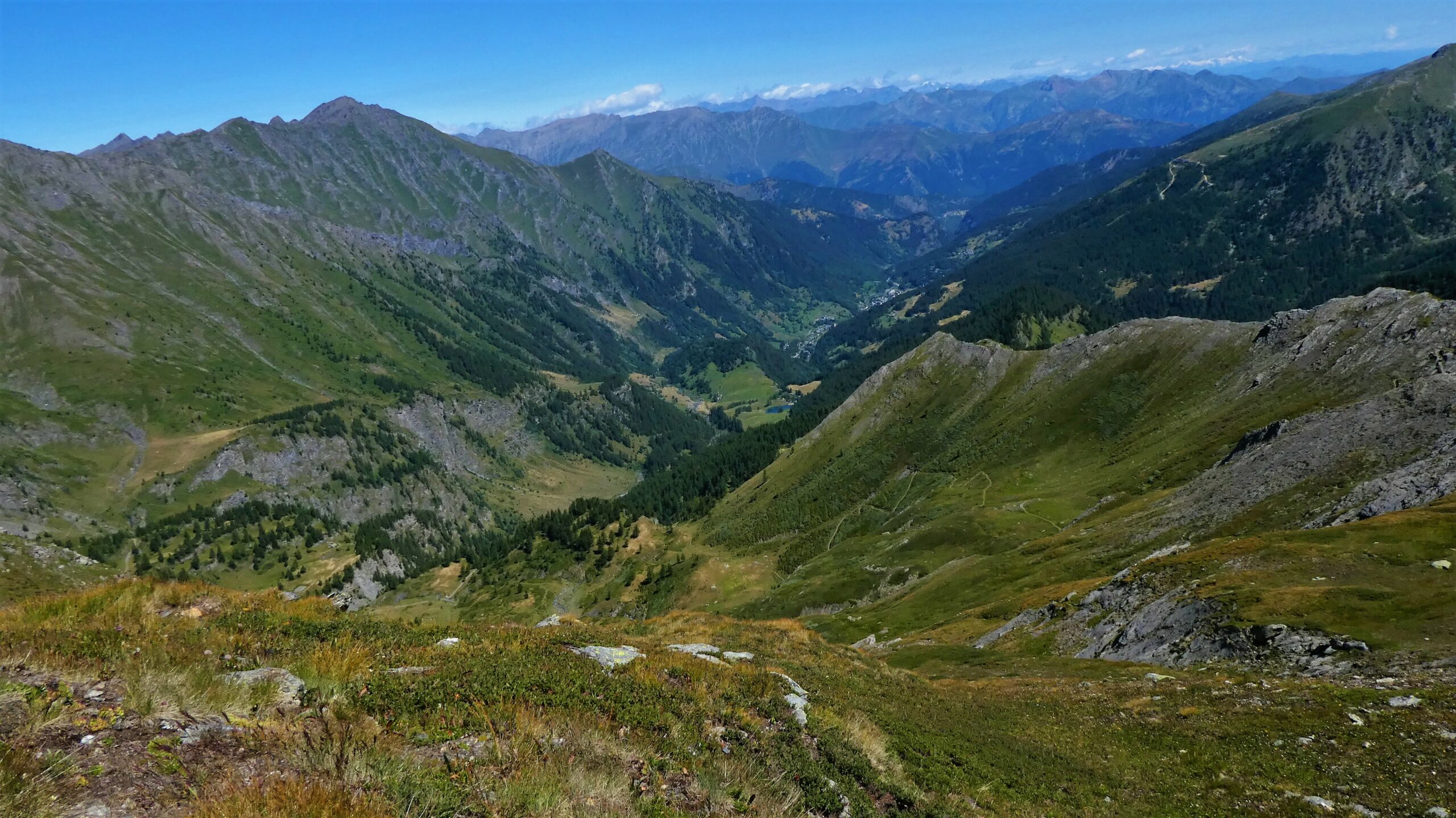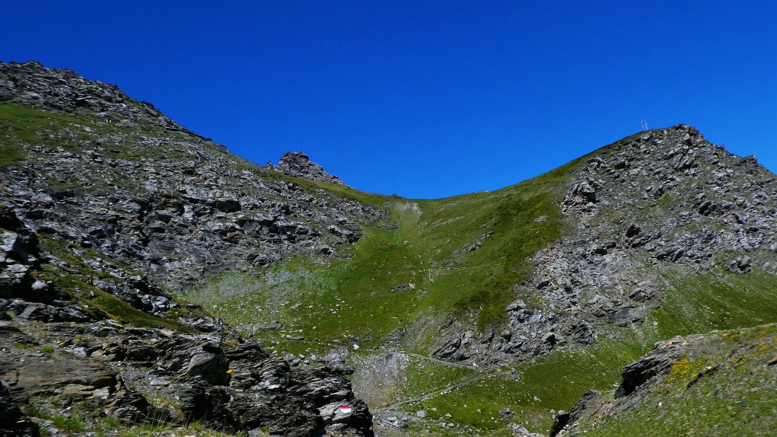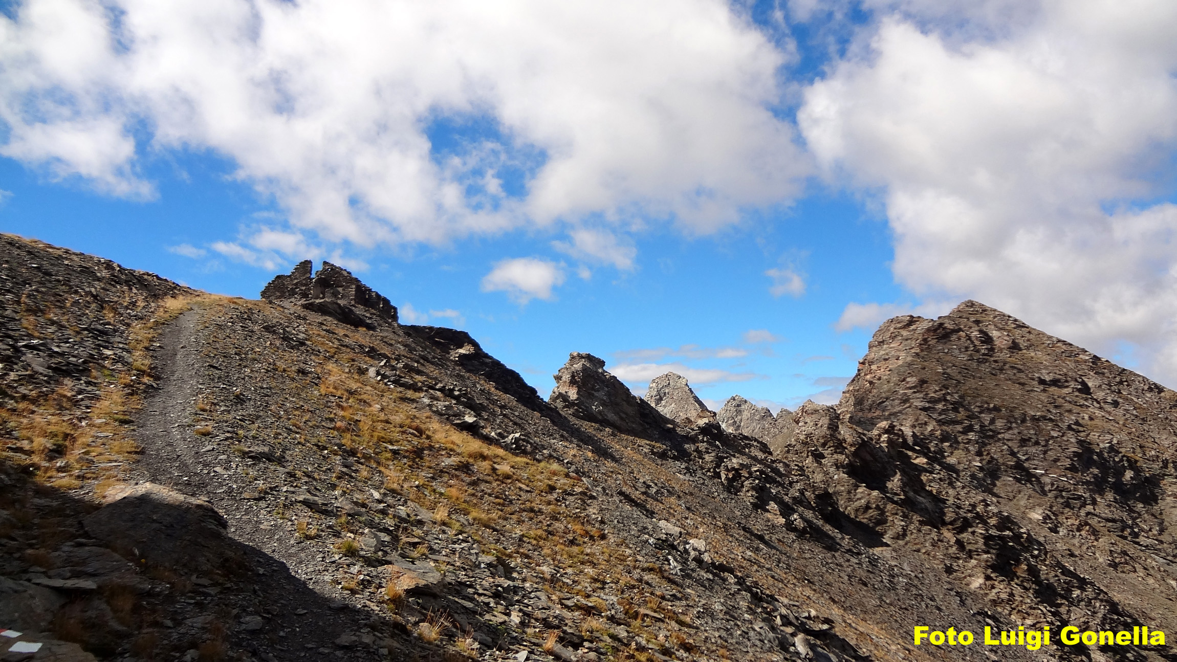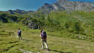 Dalle bergerie seguire per qualche decina di metri la strada sterrata che si spinge verso la testata della valle, deviando poi a sx per un sentiero ascendente (EPT 208 – GTA) che, descritti numerosi ripidi tornanti nel fitto di un lariceto, esce su un verde pianoro pascolivo.