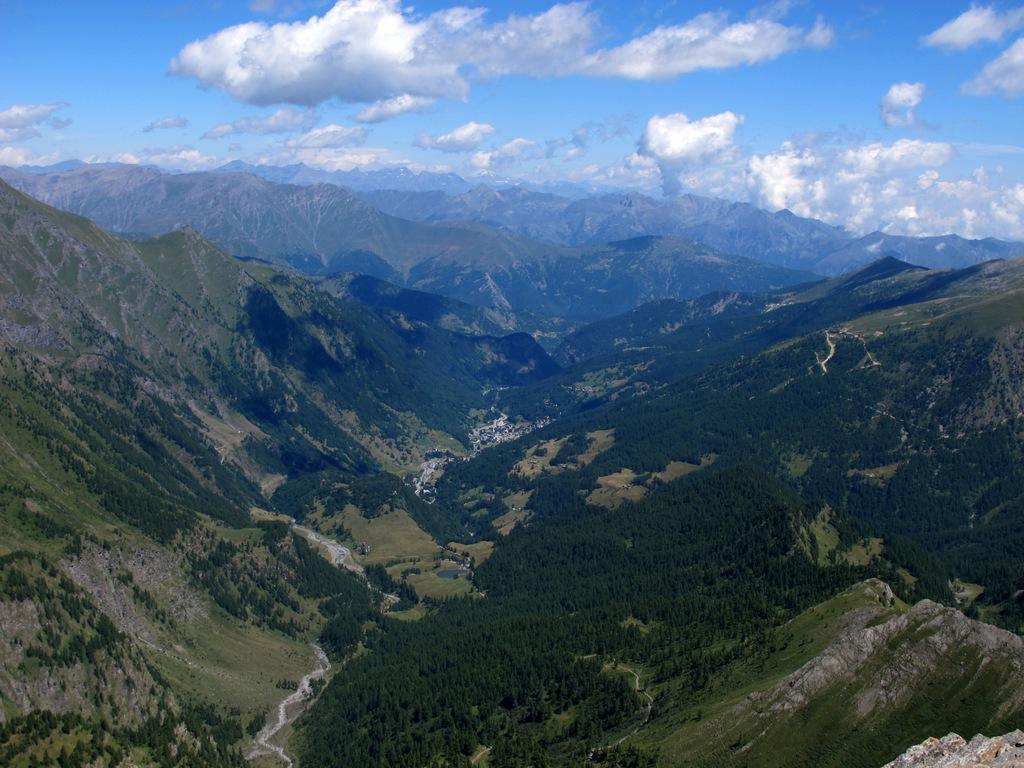 Ritornare direttamente al Colle Banciet e calarsi per il suo detritico versante settentrionale fino a raggiungere il GTA a quota 2300 circa. Si rimane sul GTA per un piccolo tratto in direzione del Passo di Brard e poi lo si abbandona a sinistra in corrispondenza del sentiero che scende nel Vallone della Miniera. Giunti in prossimità del torrente lo si attraversa e si risale il pendio opposto su labile traccia fino al Passo di Viafiorcia da dove, scendendo sempre per tracce (occasionali bollini rossi), ci si ricongiunge con il 208 e in altri 20 minuti si è all’auto. L’anello descritto è di circa 17 Km.