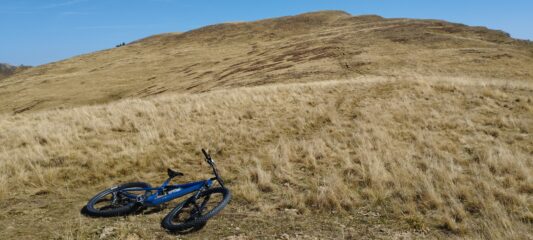 Ora non resta che buttarvi giù sul sentiero che percorre il bel crinale in ripida discesa, in sella con molta attenzione.