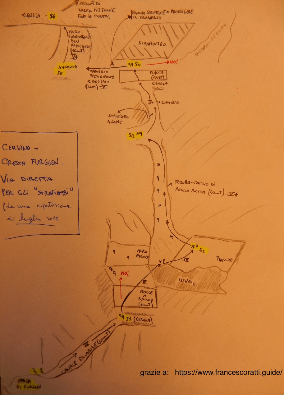 Cervino o Matterhorn – Cresta del Furggen, Diretta degli Strapiombi