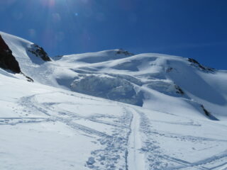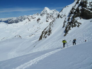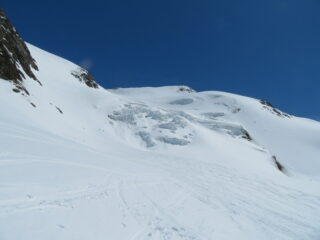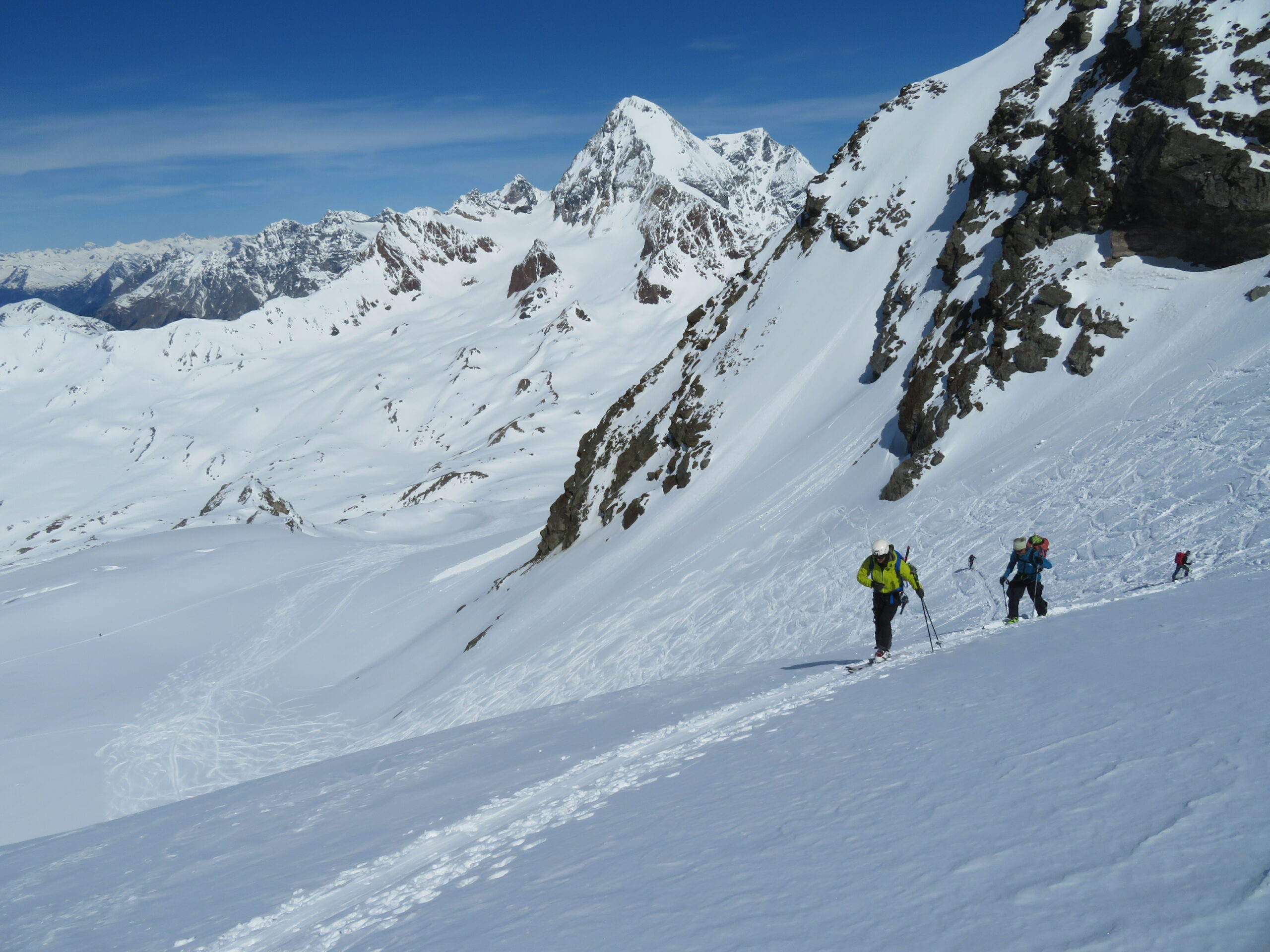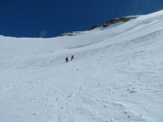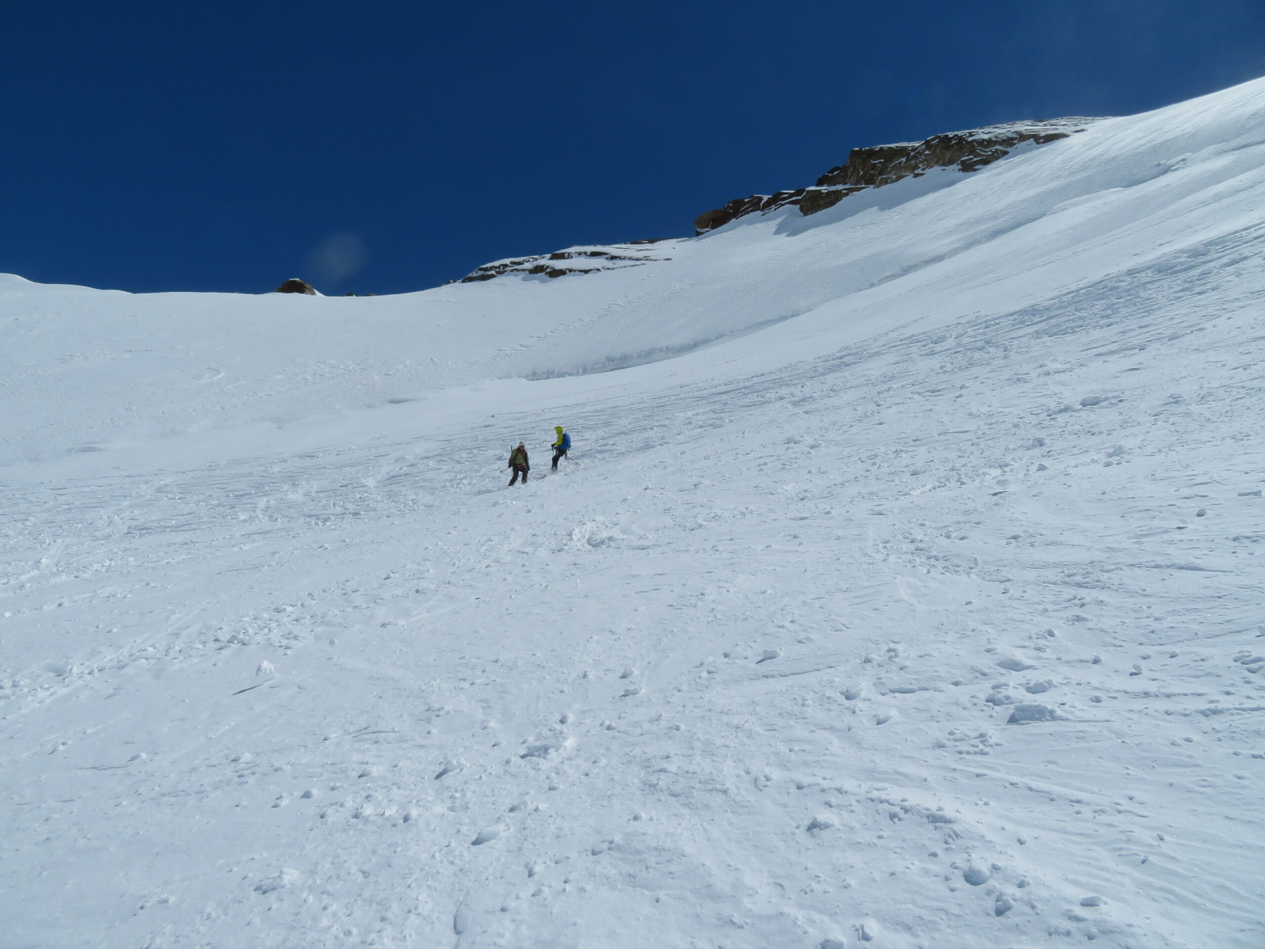 Si portano gli sci 20 minuti. Ottima traccia fino in cima che si raggiunge sci ai piedi senza coltelli. No ghiaccio e solo un paio di buchi nei pressi della terminale. Per il resto tutto chiuso, pendii stupendi. Un po’ di aria ma niente di fastidioso, giornata ottima con Enri e Giac.