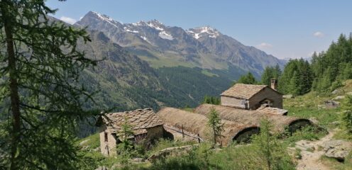 Ritorno dopo dieci anni al Rifugio Chabod. Primo tratto di mulattiera nel bosco poi si raggiunge l’Alpe Lavassey e si sale nell’ampia mulattiera con il grandioso panorama del Gran Paradiso. Oggi giornata stupenda con un bel venticello fresco che aiutava la salita.