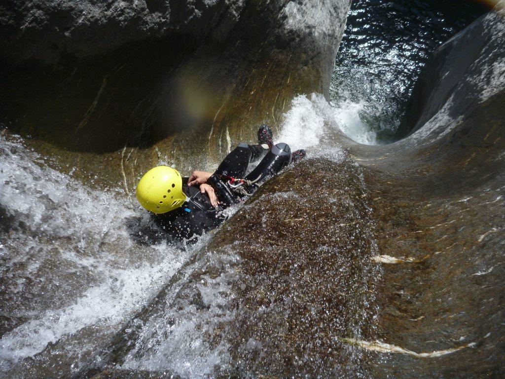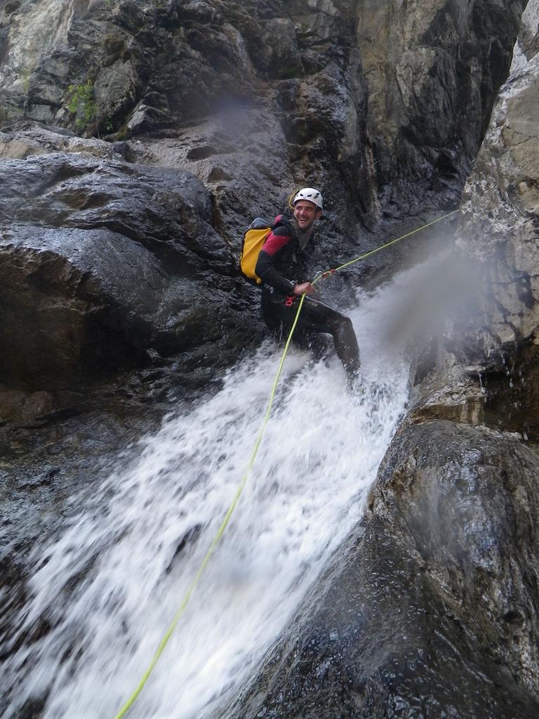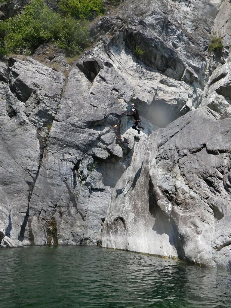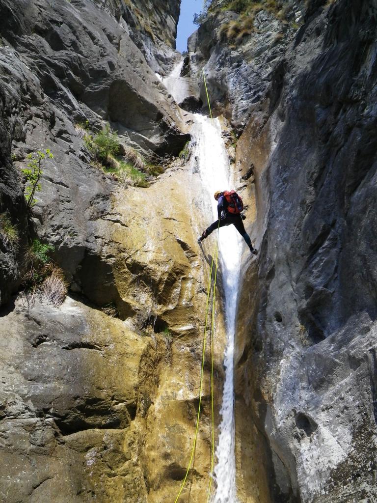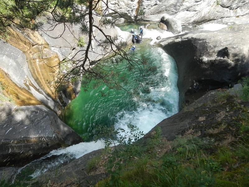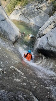 Dal ponte di Gorf si sale il sentiero dopo il ponte per 15 minuti che porta alla prima calata da albero (15 m.) La parte cosidetta alta è caratterizzata da belle vasche con possibilità di tuffi da varie altezze e un bellissimo toboga. dopo il ponte uscita possibile in riva sinistra .La parte bassa presenta ancora alcuni bei tuffi e 2 belle calate la più alta 33 m. La golasi apre un po e si arriva ad una frana con caos di massi ,con un’ulima calatina sulla parte sinistra di 5 metri con fix.si attraversa sotto grosso masso e disarrampicando verso destra si raggiunge il sentiero che porta all’auto vicino al ponte.