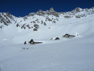 Partiti per fare il Gran Pays ma entrati nel vallone i pendii non ispiravano fiducia, quindi seguendo alcune tracce di discesa abbiamo risalito uno dei percorsi del col Chaleby e per la precisione quello che scorre lungo il torrente chaleby. Arrivati in vetta in solitudine dopo una pistatona.In seguito arrivati altri escursionisti dalla normale. Neve ancora farinosa ma in alcuni posti inizia a risentire del lavoro del sole. Tempo bellissimo ma freddo . Gita col bergamasco Claudio.
