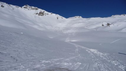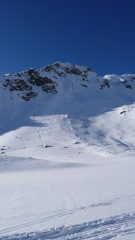 Comfermo quello descritto dai molti altri sci alpinisti presenti in cima, ma consiglio se si voule trovare la stellina in piu’ di scendere giu’ nel bosco prima del traverso.farina da favola, poi si ripella e se se si vuole si sale ancora fino a costa champoluc. la discesa nel canalino non e’ male