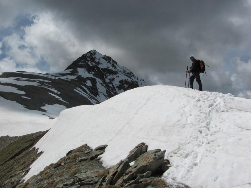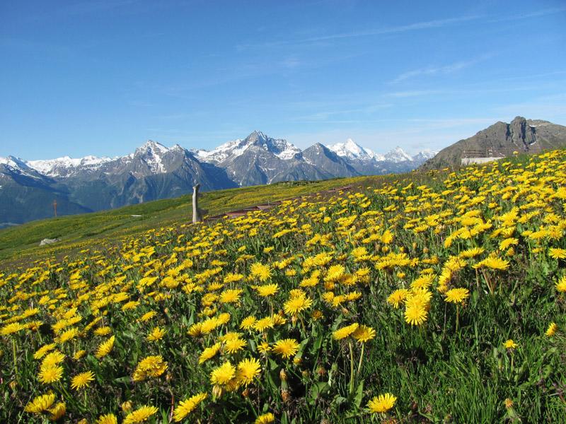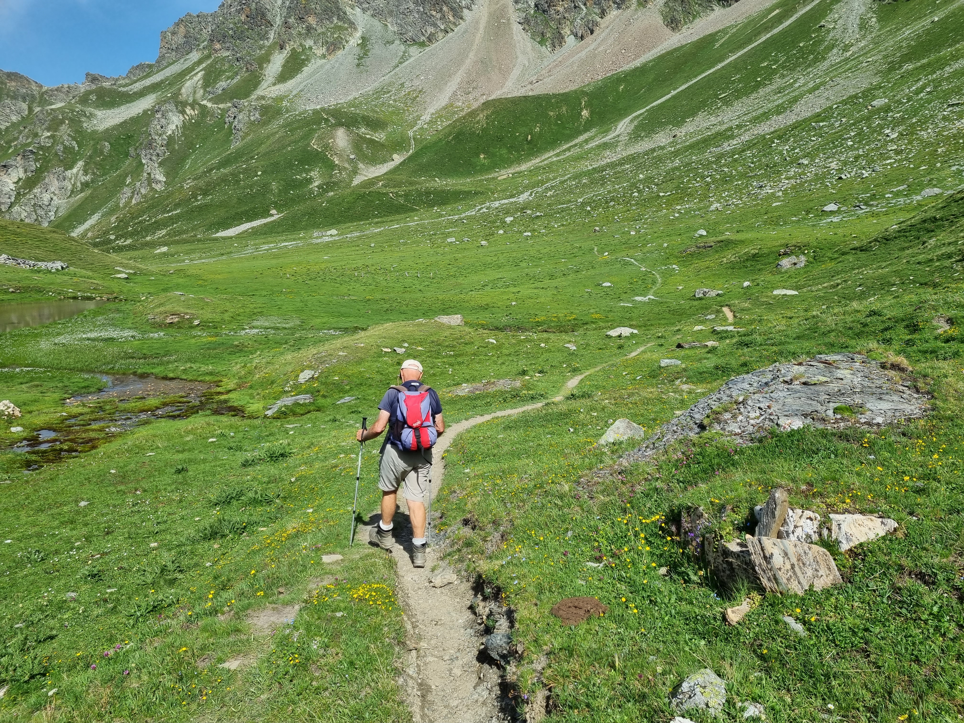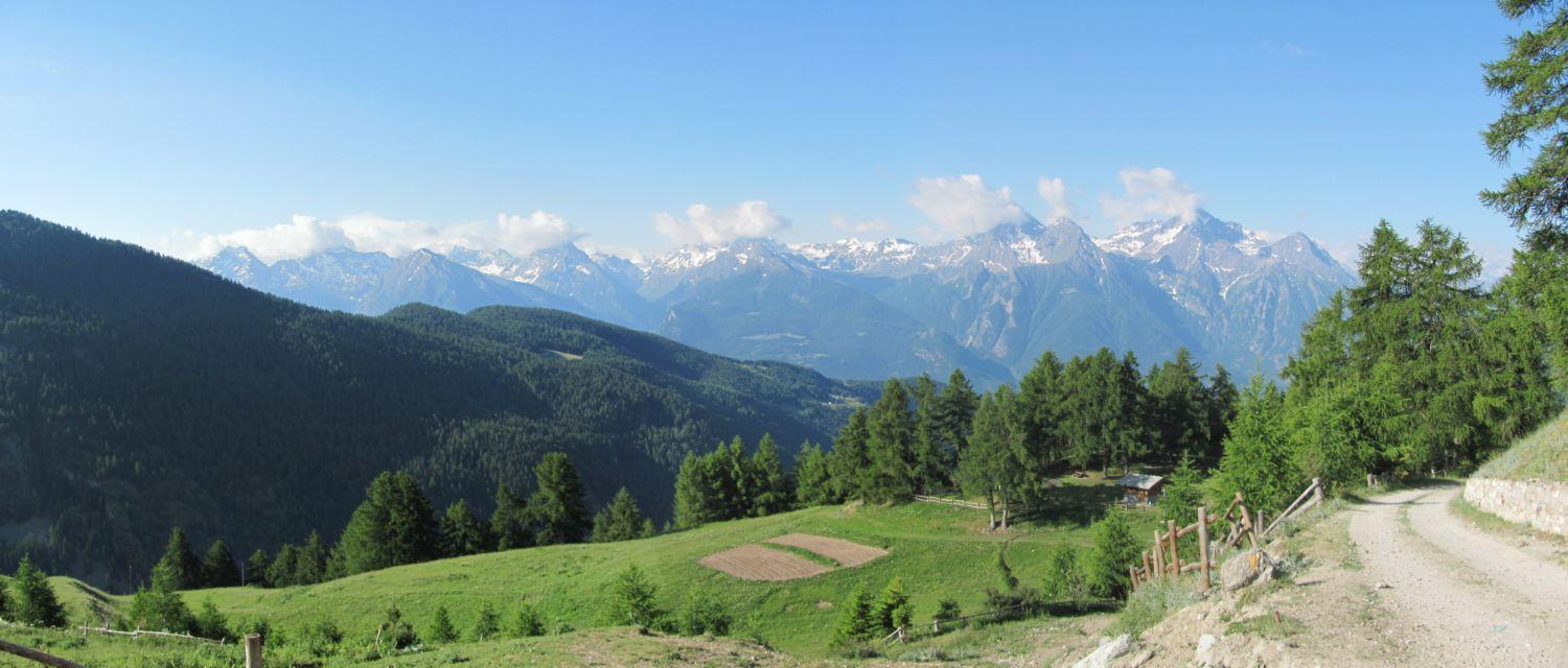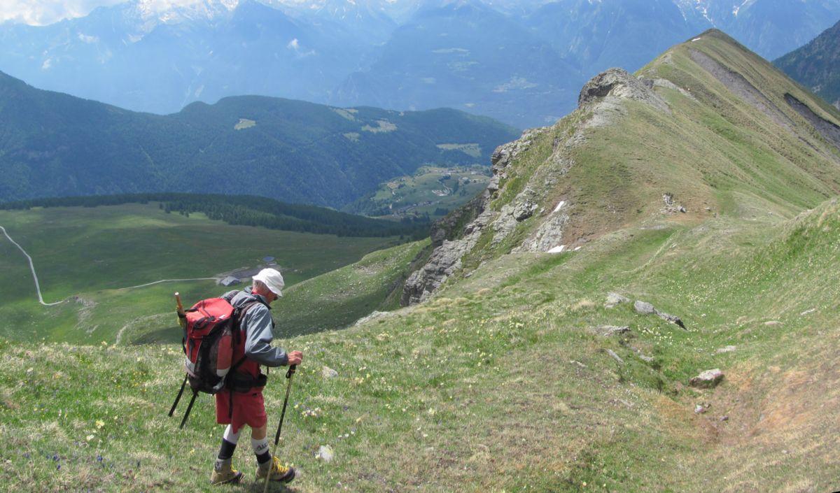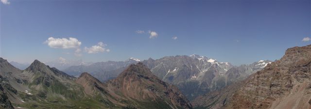 Rientro: ripercorrere il sentiero fatto fino allo stagno, poi salire al col Chaleby (m. 2683); al colle spuntano Cervino, Cian, Monte Rosa.