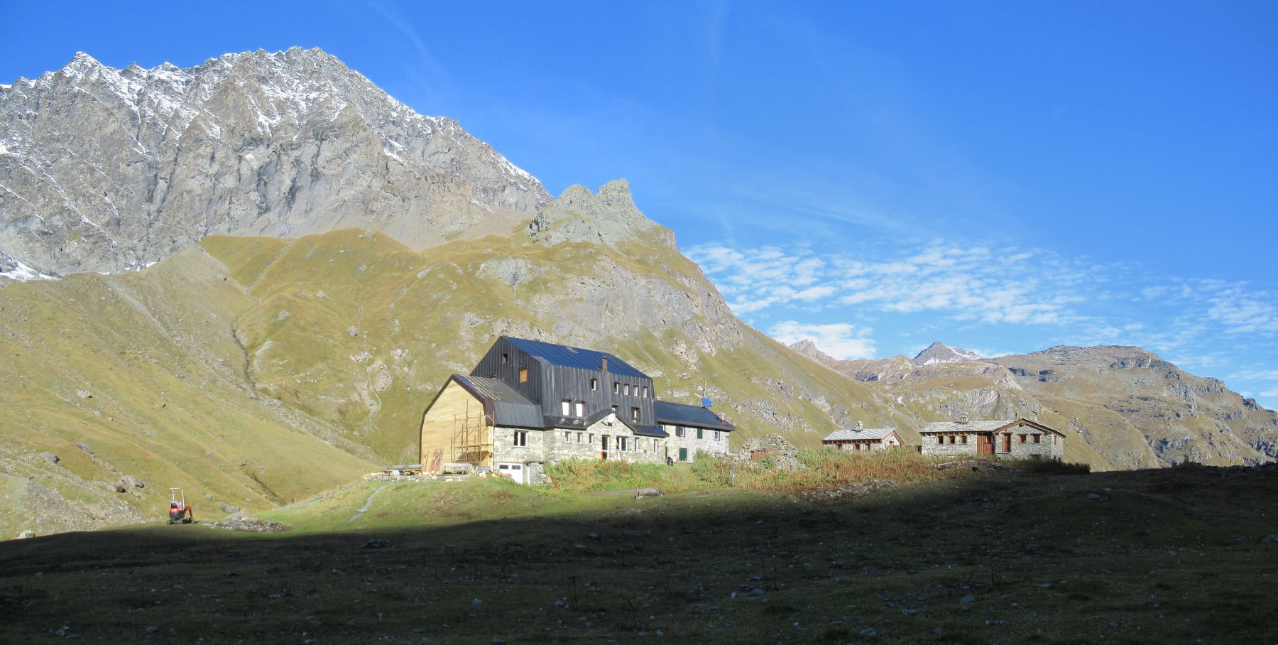 Dopo 1h45′ si raggiunge il Rifugio Bezzi da cui si gode una splendida vista sul ghiacciaio della Gliaretta.