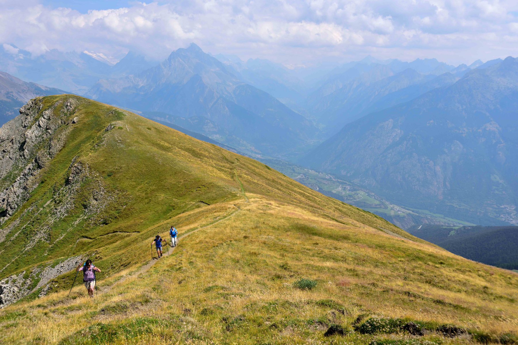 Con poca fatica si arriva al Col de Tardiva 2410 m, dove la salita riprende più marcata sempre lungo la dorsale condurrà in cima alla Pointe de Chaligne, già visibile in lontananza.