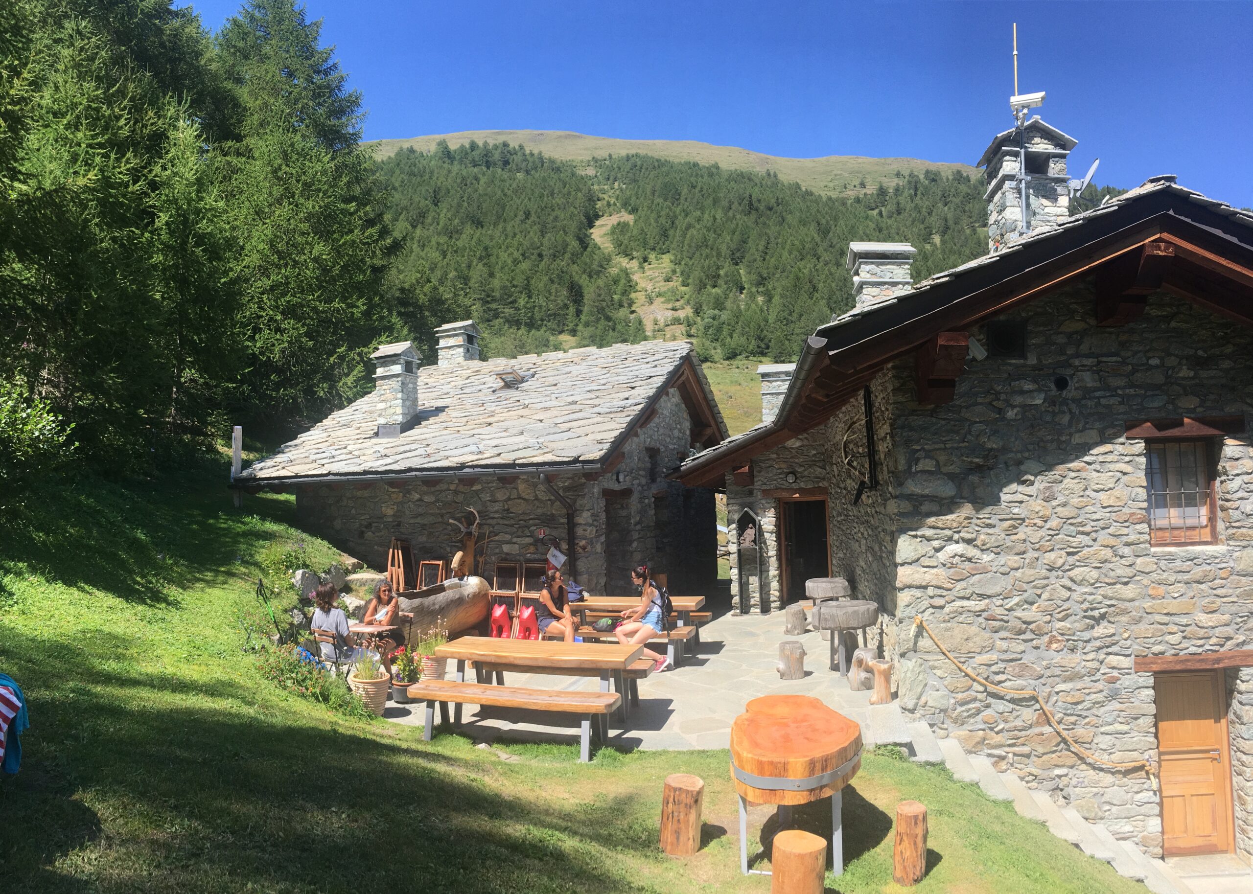 A 2342 m si incontra il Plan du Debat, che si lascia in basso a destra proseguendo a mezza costa fino a raggiungere i prati del grosso alpeggio Tsa de Chaligne 2225 m. Attraversato il pianoro pascolivo, si entra nel bosco in un avvallamento che rapidamente conduce al Rifugio Chaligne 1936 m.
