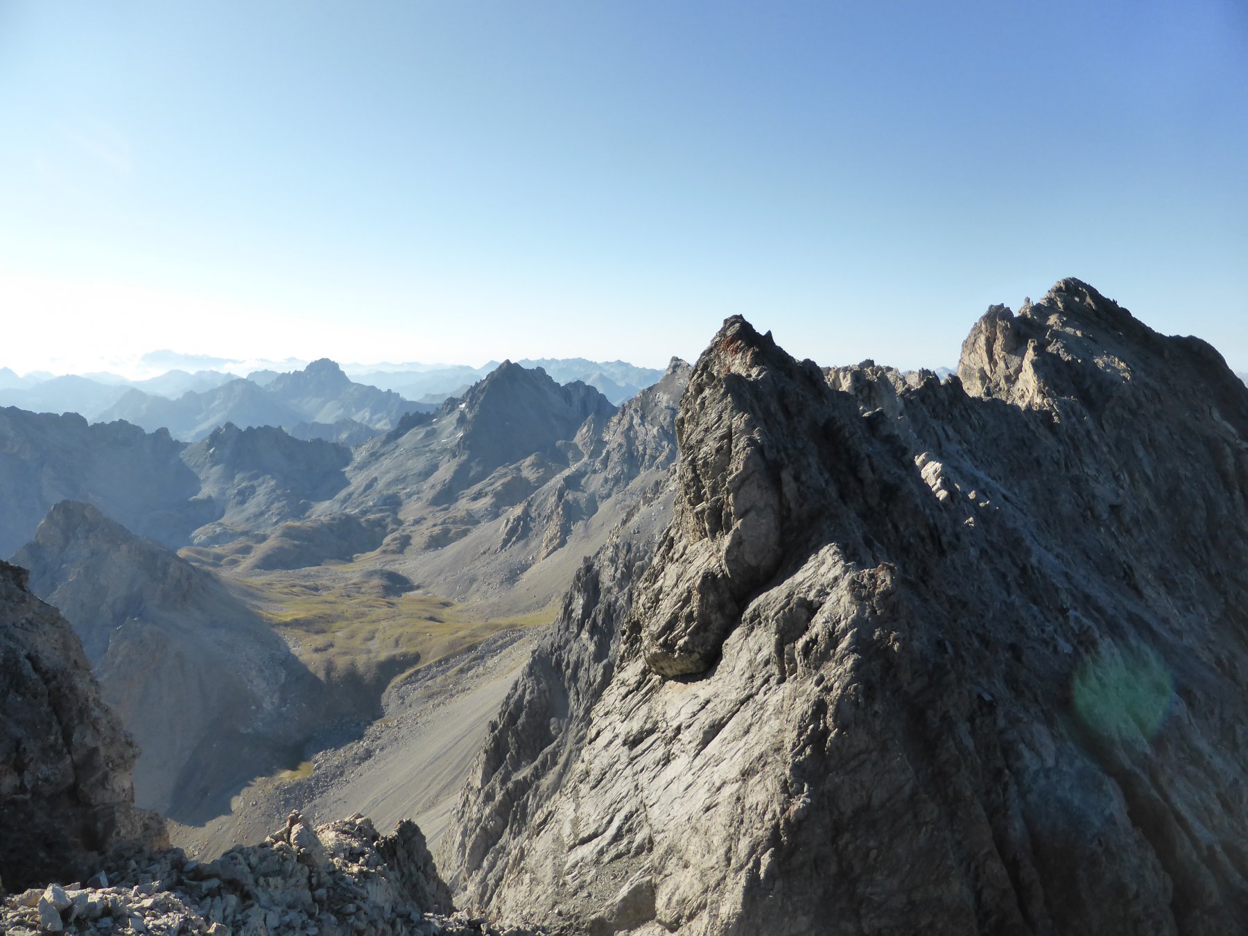 Raggiunta la cresta sud del Nubiera tra questo ed il Massour, la si segue lungamente aggirandola per lunghi tratti a volte sul lato francese a volte su quello italiano.