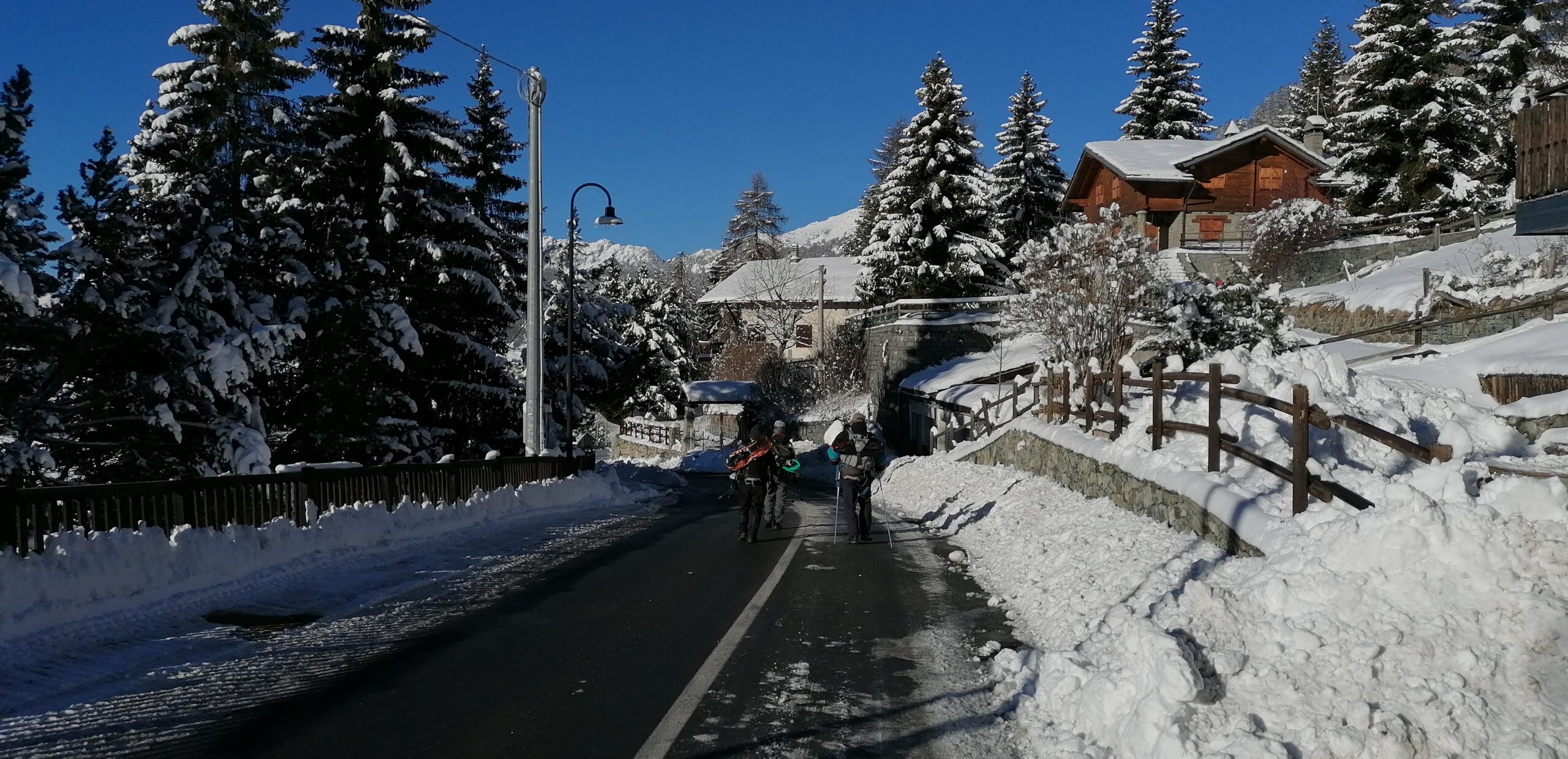 Al ponte si sale sulla sx orog. fino ad un successivo ponticello nei pressi del vecchio mulino. Si prosegue in leggera salita ed in breve si raggiunge il villaggio di Crepin ottimo punto panoramico. Si scende ora a Chamois e si rientra sul percorso dell’andata