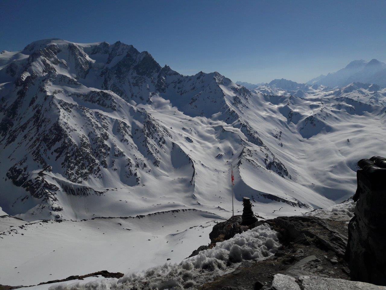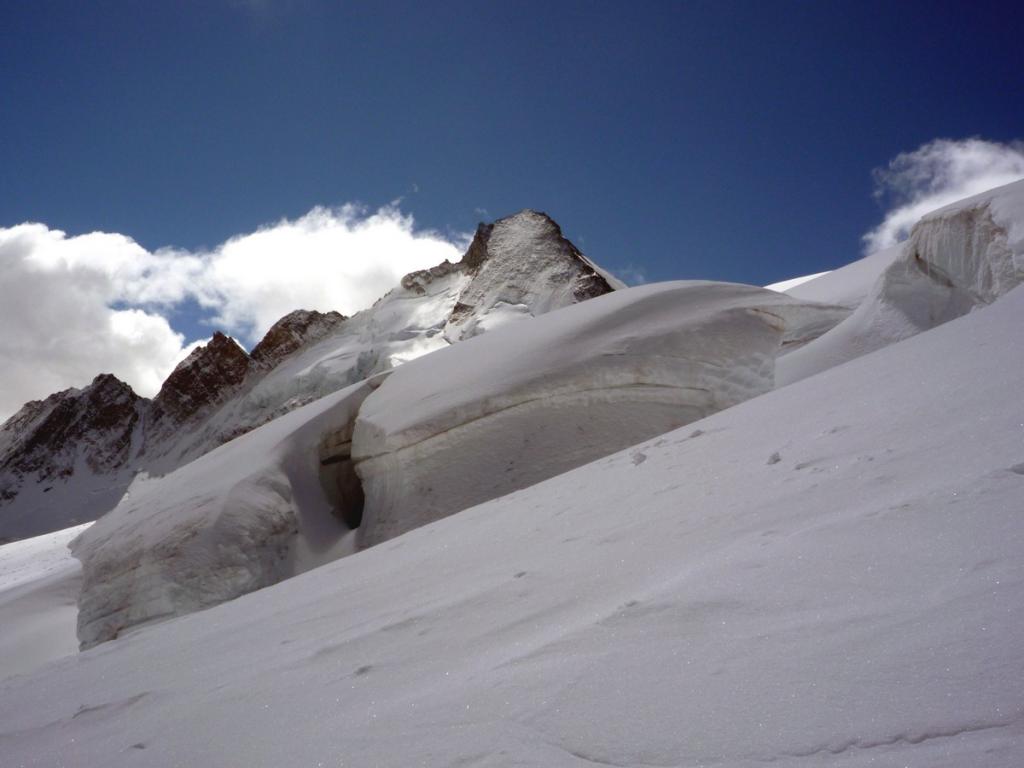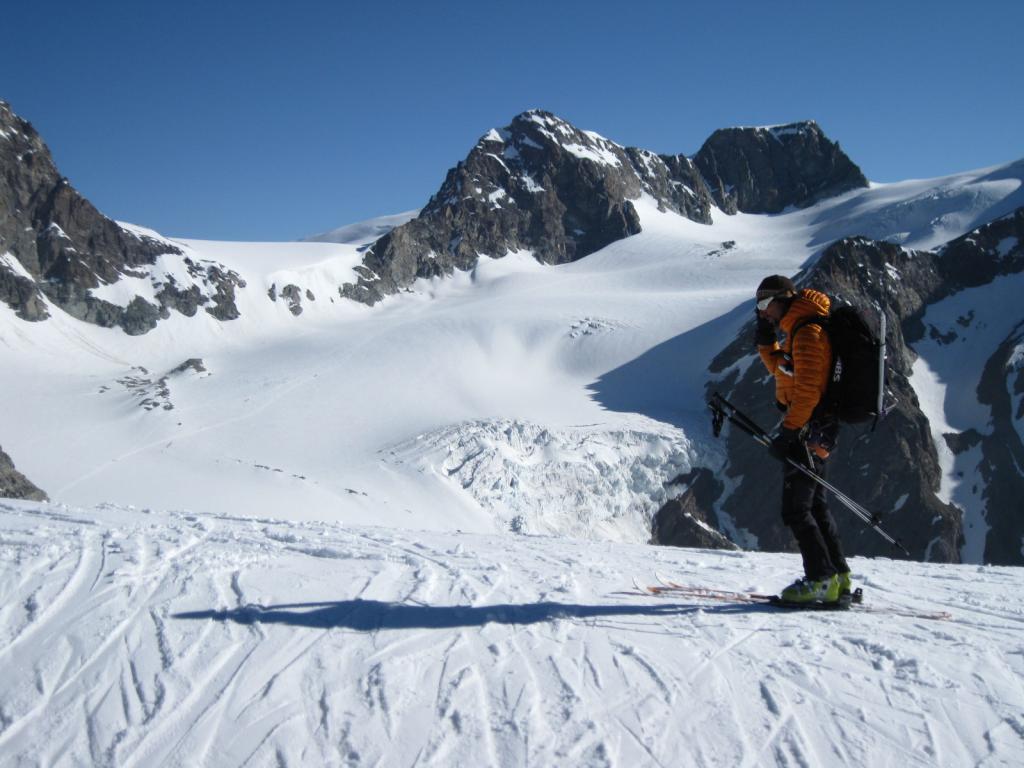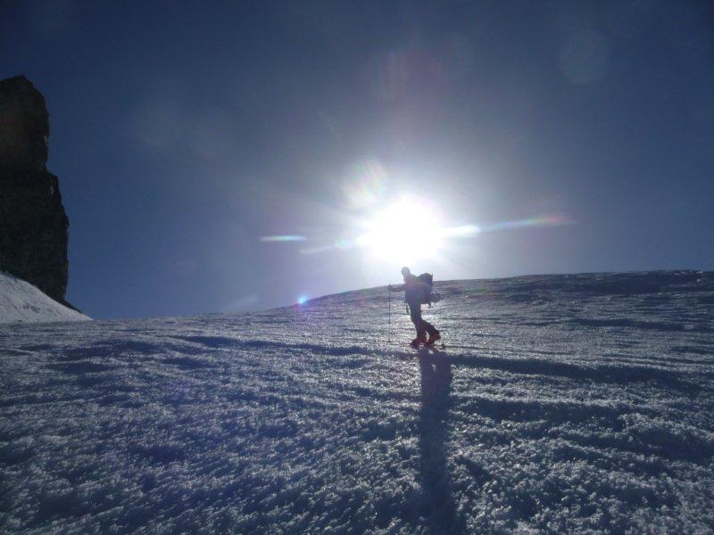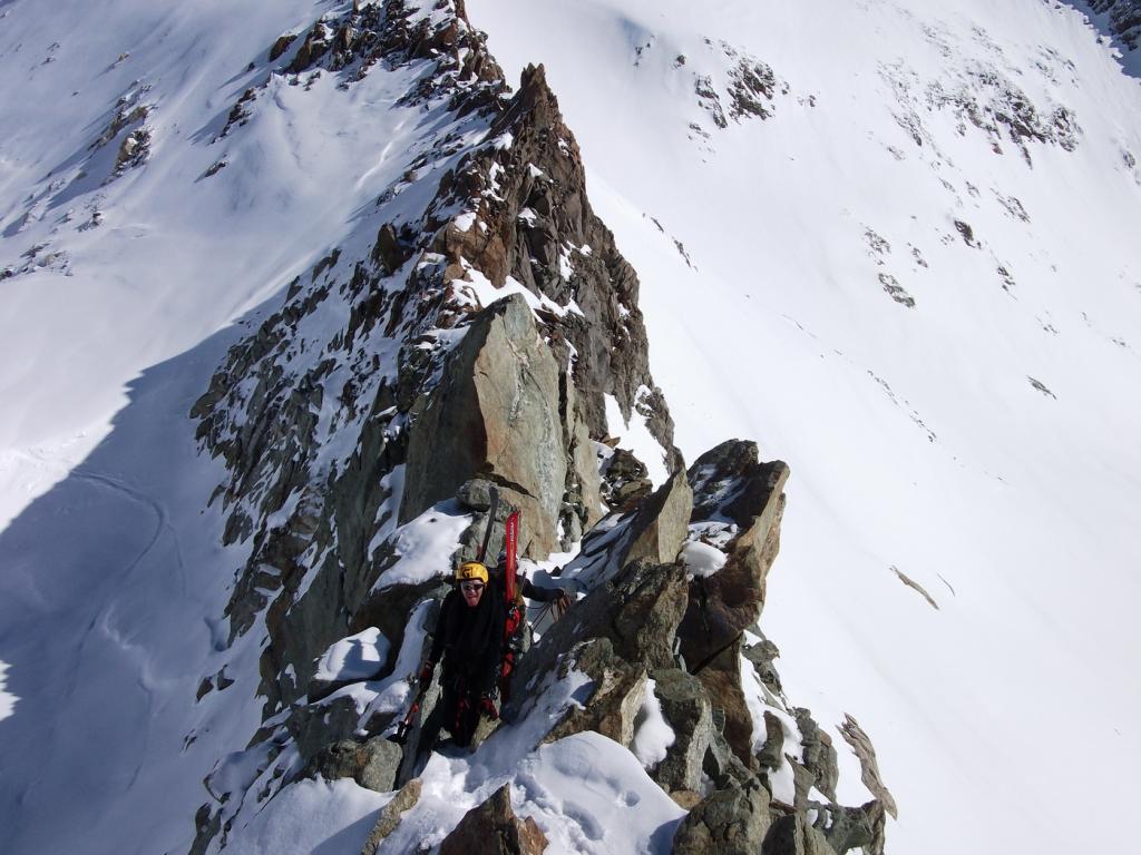 Discesa: dal colletto poco sotto la vetta ci si abbassa in una conca, quindi per un pendio più ripido verso sinistra, transitando sotto dei seracchi si perviene al Colle des Vignettes dove è situato il Rifugio mt. 3158.