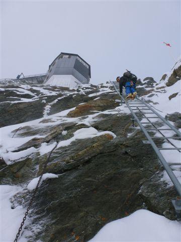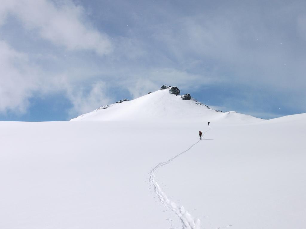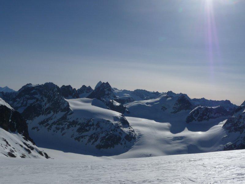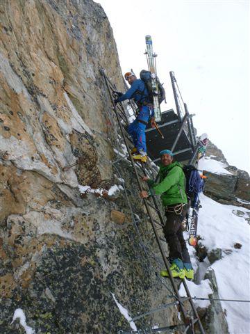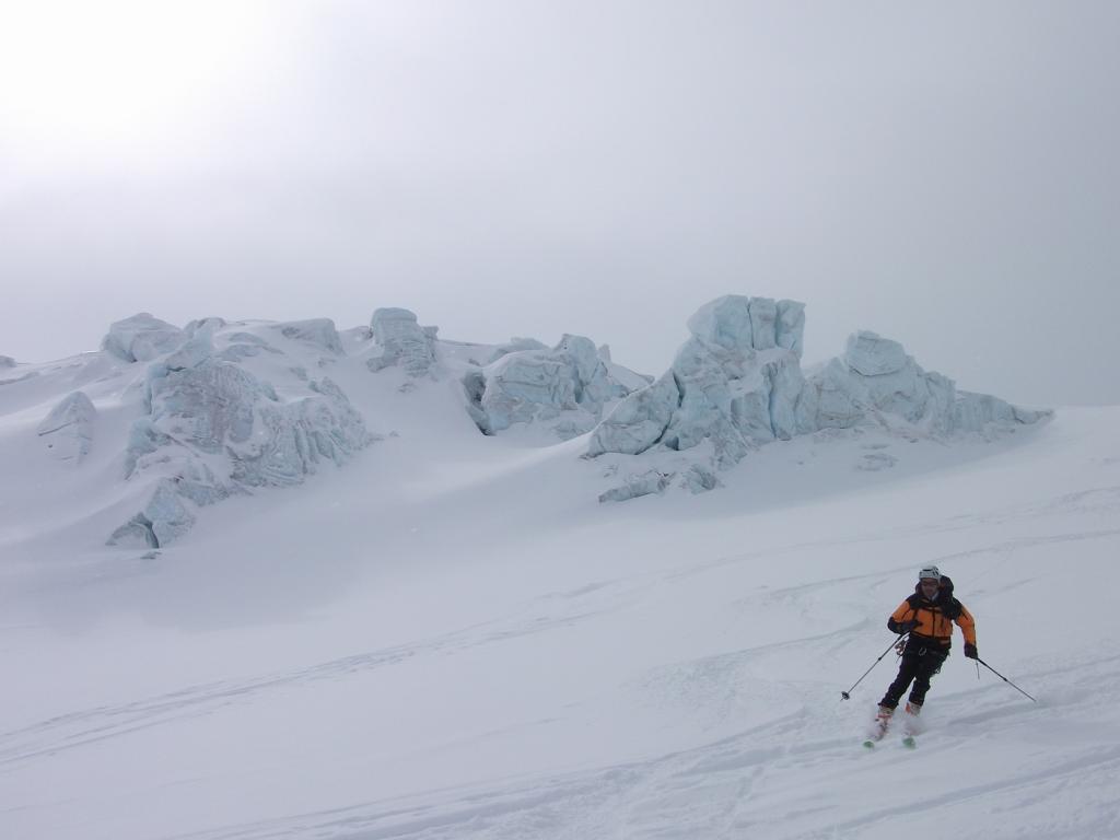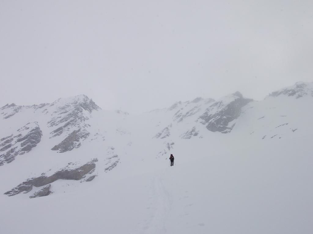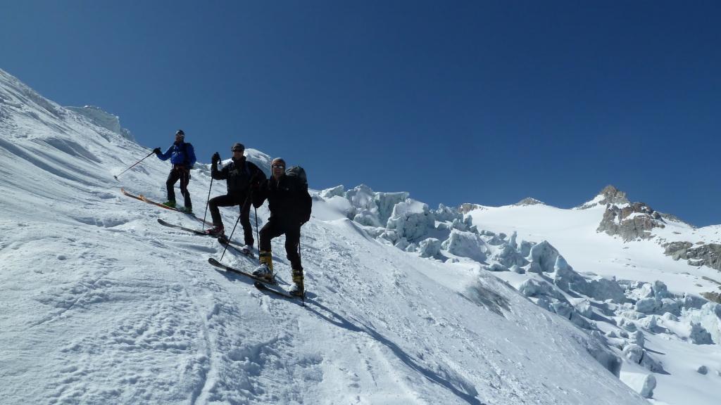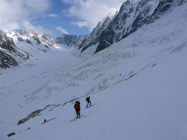 Discesa: dal colletto poco sotto la vetta ci si abbassa in una conca, quindi per un pendio più ripido verso sinistra, transitando sotto dei seracchi si perviene al Colle des Vignettes dove è situato il Rifugio mt. 3158.