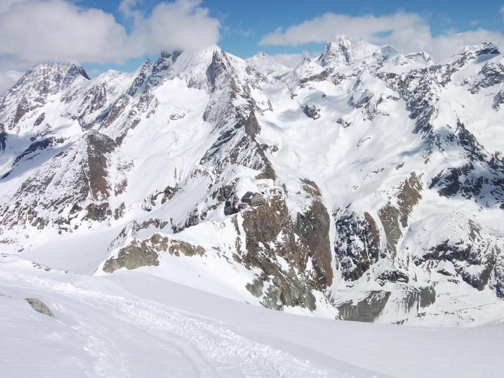 Dalla Cabanne si scende sul ghiacciaio del M. Collon e si raggiunge il Col de l’Eveque mt.3392. Scendere dal Colle passando sotto la Vierge e in direzione E risalire il ripido pendio del Col Mont Brulé mt 3212.. Scendere sul ghiacciaio del Tsa de Tsan e salire al Colle Valpelline mt.3568. Dal colle con evidente percorso si sale sulla Tete de Valpelline mt 3798.