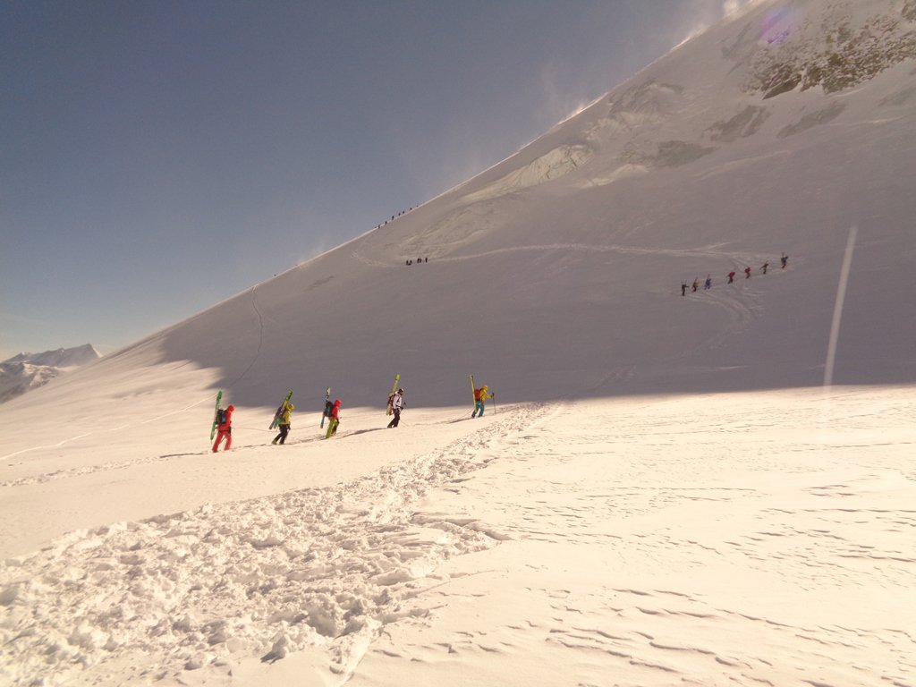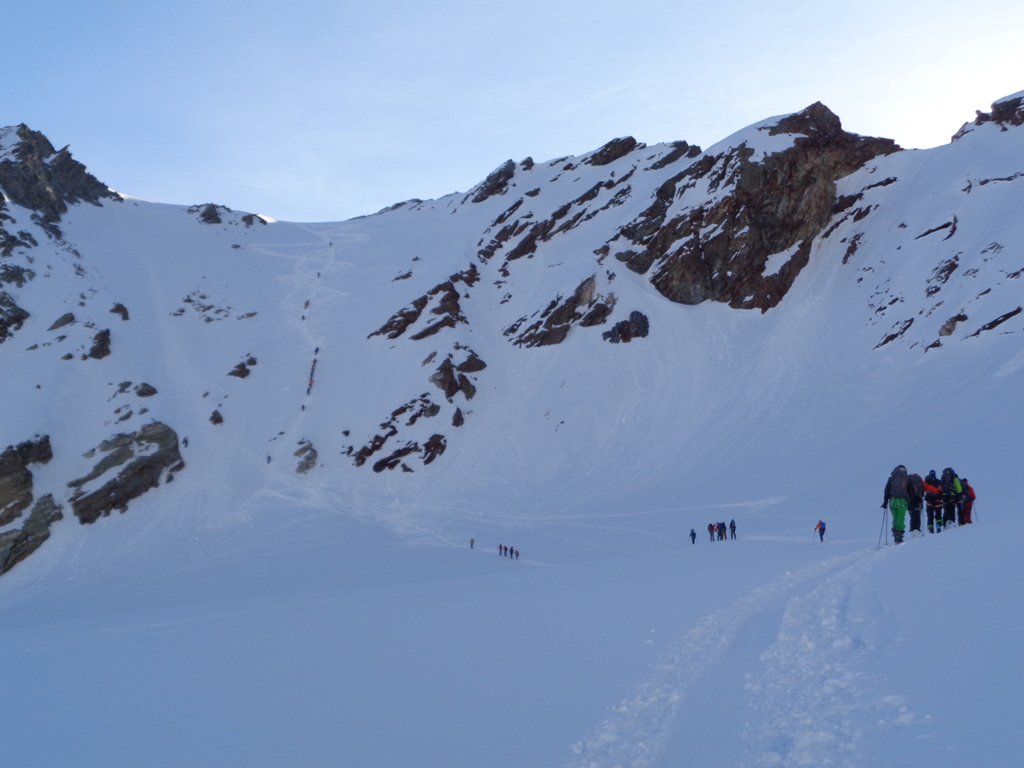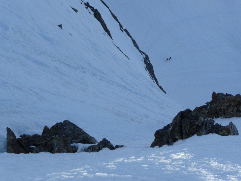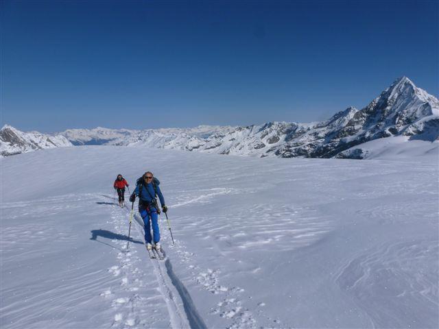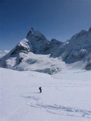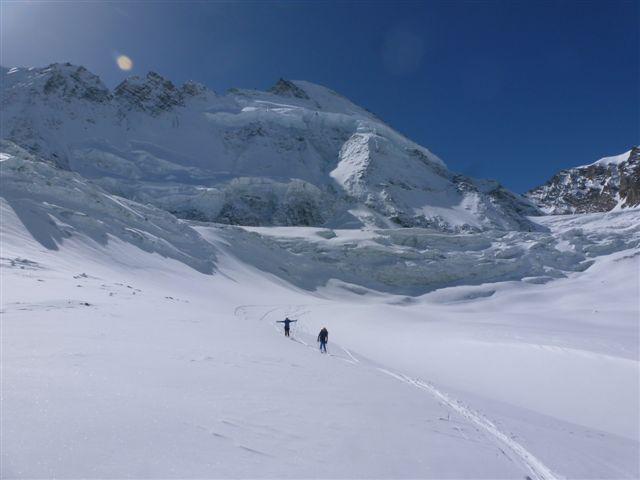 Discesa: ritornare al colle, scendere il ghiacciaio Stockji tenendosi al centro per poi portarsi progressivamente a destra per confluire su pendii più ripidi sul ghiacciaio Tiefmatten e successivamente sul ghiacciaio Zmutt. Percorrendo le piste di rientro di sci si arriva fino a Zermatt.