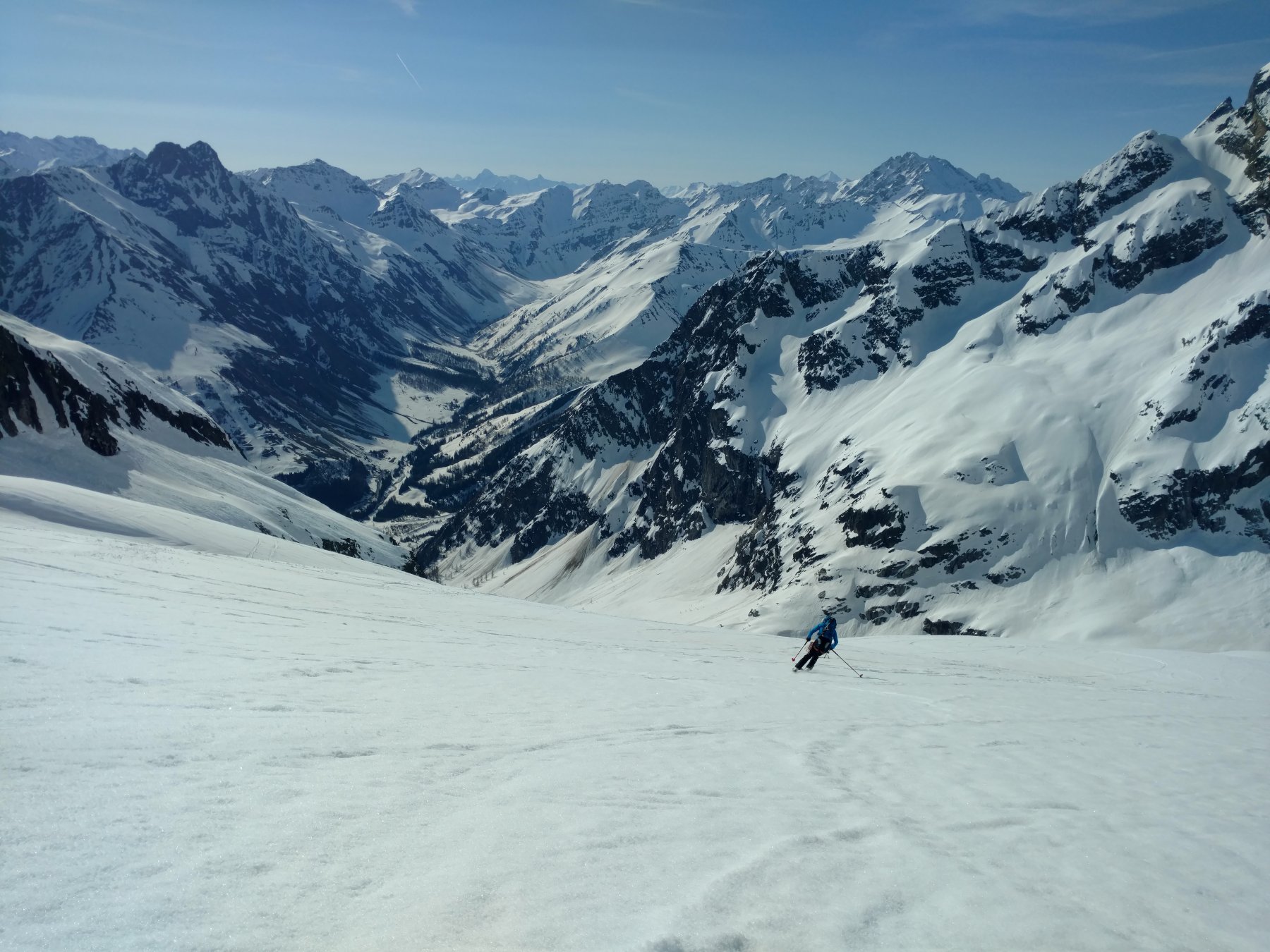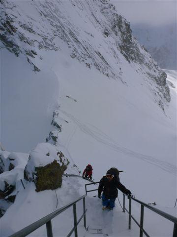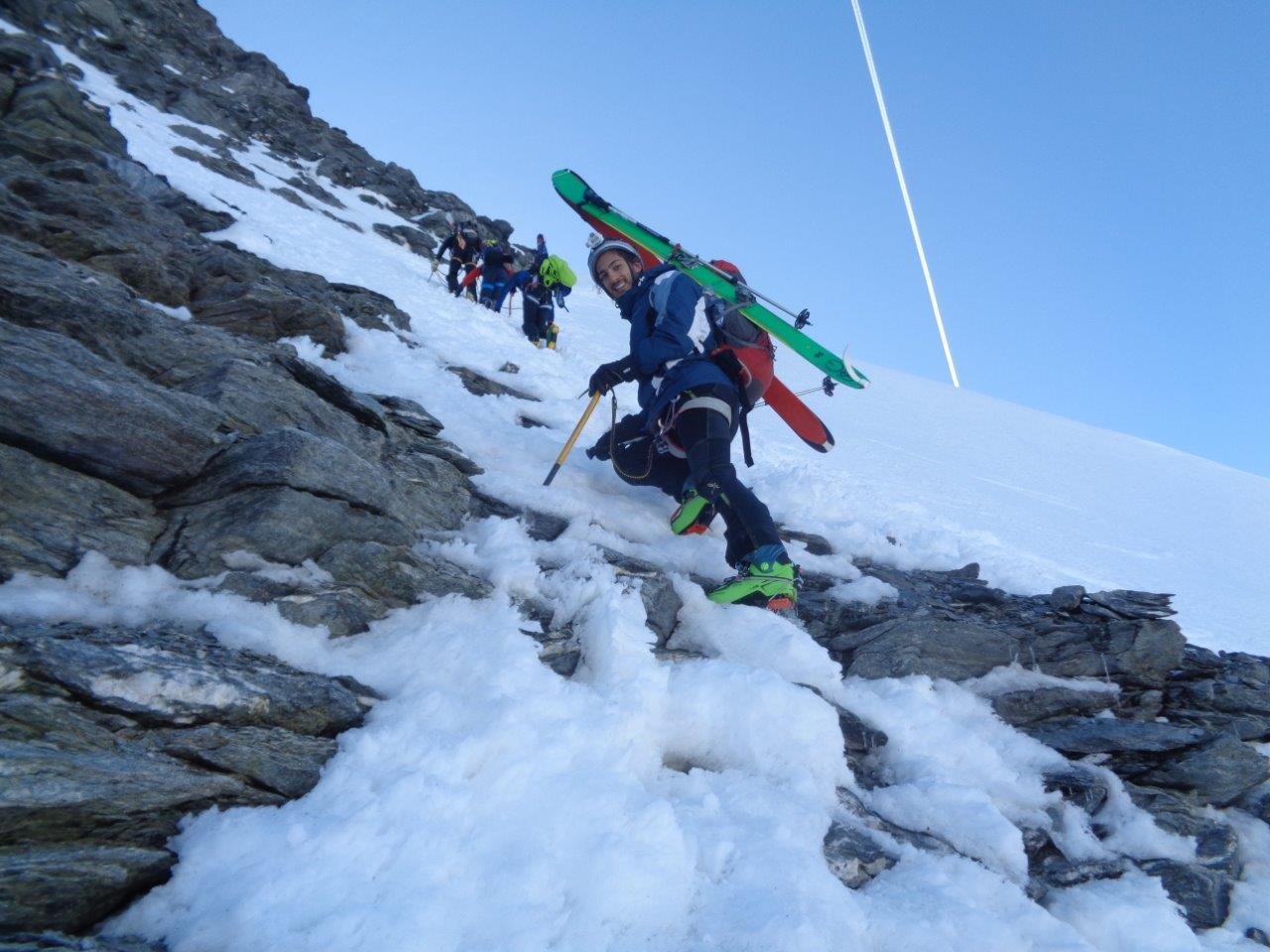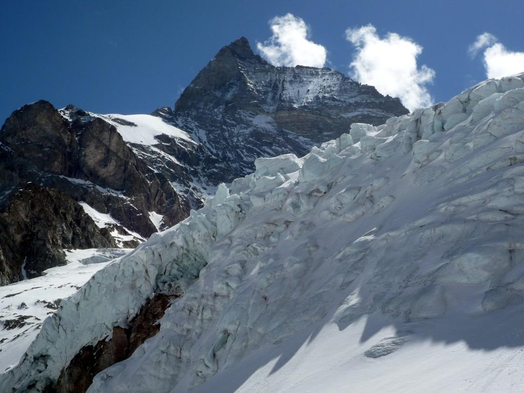 Discesa: ritornare al colle, scendere il ghiacciaio Stockji tenendosi al centro per poi portarsi progressivamente a destra per confluire su pendii più ripidi sul ghiacciaio Tiefmatten e successivamente sul ghiacciaio Zmutt. Percorrendo le piste di rientro di sci si arriva fino a Zermatt.