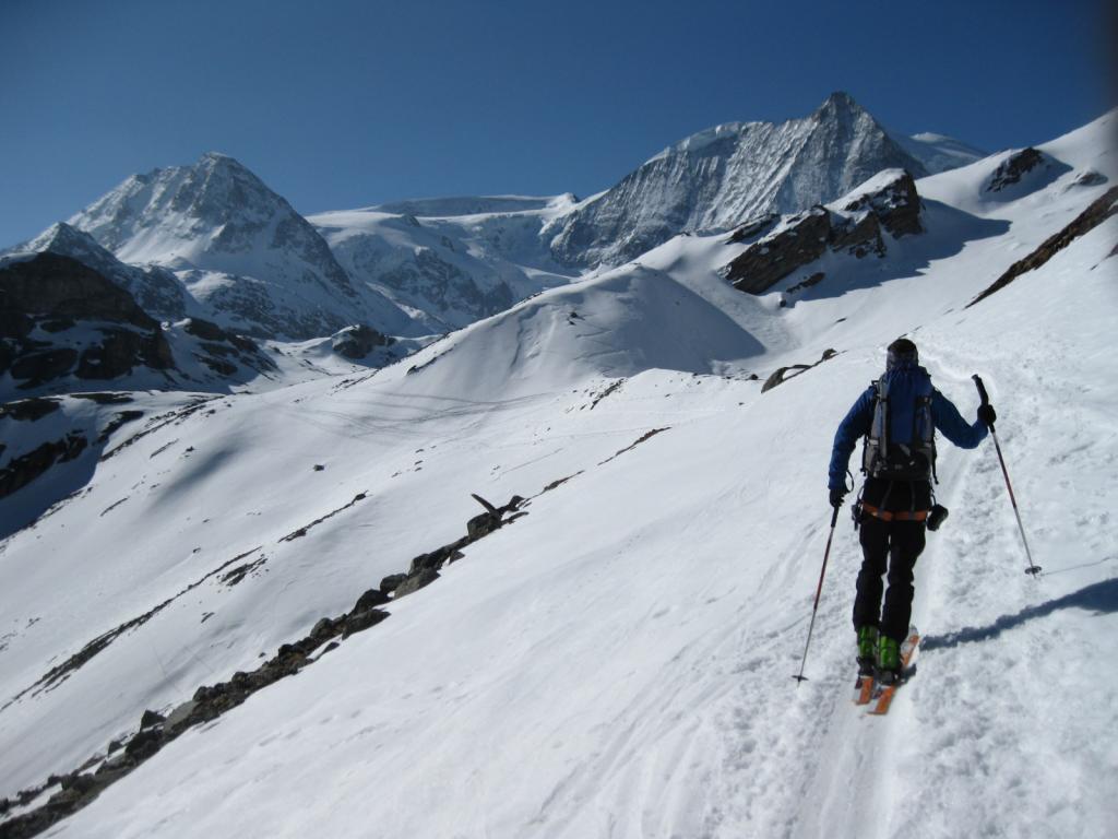Da Bourg St. Pierre imboccare la stradina che porta alla frazione Cordonna (mt.1834) e sempre in direzione E-SE, raggiungere la Cabanne de Valsorey (mt. 3030). Risalire il pendio in direzione NE. Verso la quota 3300 circa lo stesso si impenna (40-45°) e dirigersi verso destra per risalire il canale più a destra. Il Plateau du Couloir (mt. 3650) si raggiunge compiendo, nella parte finale, un traverso verso destra. Dal Plateau si scende sul ghiacciaio del Sonadon e restando il più in alto possibile si raggiunge il Col du Sonadon (mt. 3504). Si percorre in discesa il ghiacciaio du Mont Durand e alla quota 2230 mt circa, attraversato il torrente, si risale alla Cabanne de Chanrion (mt.2460).