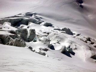 1°giorno: da Argentière funivia Grands Montets, discesa sul Glacier des Rognons, risalita al Col du Chardonnet(3323m)prima parte con ramponi). Discesa sci a spalle in corda doppia. Non è presente la corda fissa,(come invece pensavamo) necessaria corda almeno da 70. Traverso di discesa, ripellato per la Fenetre de Saleina (3261) (ramponi).Discesa sul Glacier du Trient (qualche crepaccio aperto) risalita breve quasi 100 mt al col des Ecandies (2796)(ramponi). Lunga discesa nel vallone Arpette. Neve pessima,molto tracciato. 1 ora a piedi fino a Champex. Bus per Orsières.