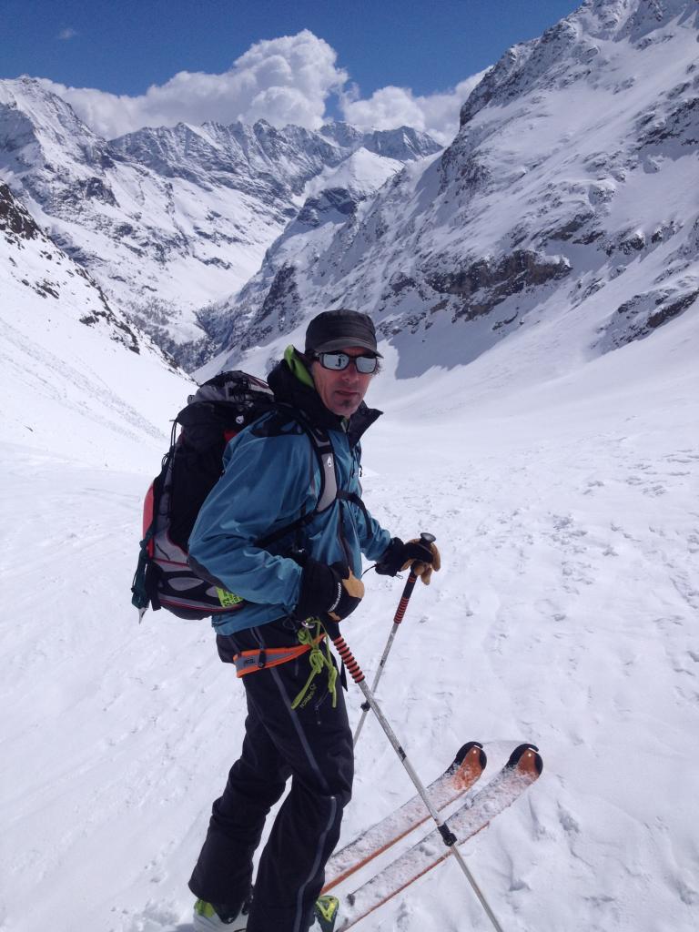 Domenica partenza nel nebbione: cancellato il Breney e Pigna siamo saliti lungo l’eterno ghiacciaio di Otemma, mentre le nuvole si aprivano regalandoci panorami incredibili, fino al col de L’Eveque da dove volevamo proseguire per Zermatt. Il nuovo peggioramento sul lato Svizzero ci ha consigliato di scendere dal Col Collon al Nacamuli. Qui, visto il bollettino pessimo per il lunedì, abbiamo deciso di proseguire fino a Bionaz anticipando il rientro. La discesa, discreta fino al Nacamuli è diventanta un inferno 300 m. sotto il rifugio. Neve fradicia e insciabile fino a sotto la diga. Ci siamo impegnati per portare a casa i legamenti…