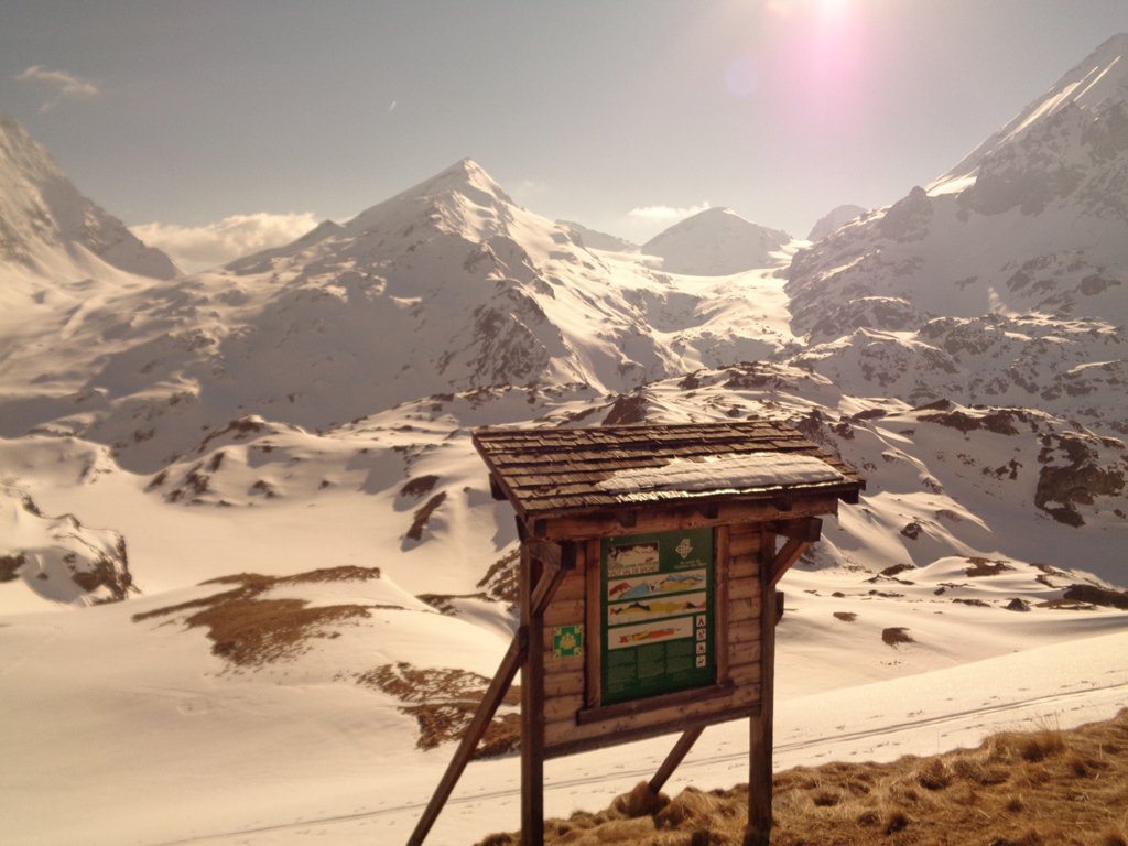 03/04: Arrivati ad Aosta verslo le 08:00, saliamo sul TAXI che per 130 € ci porta a Bourg Saint Pierre fino a q. 1800 ca. dove comincia la neve. Sole splendido e temperature miti. A piedi lungo il sentiero estivo dalla selletta a 1930 m dopo Cordonna fino a q. 2150 ca sotto gli Chalet d’Amont (2197 m), poi neve continua fino al rifugio. La neve non è abbondante, ma sufficiente. Noi percorriamo il “canyon”, ma non credo sarà percorribile a lungo; occorrerà passare alla sua dx (sin orografica). Rifugio caro (64 CHF mezza pensione + 8 CHF 1,5 l acqua) ma ottimamente gestito (servizi puliti, cena e colazione abbondante e discrete, locali riscaldati), le cuccette a “dimensione svizzera” (strettine). 10,6 km