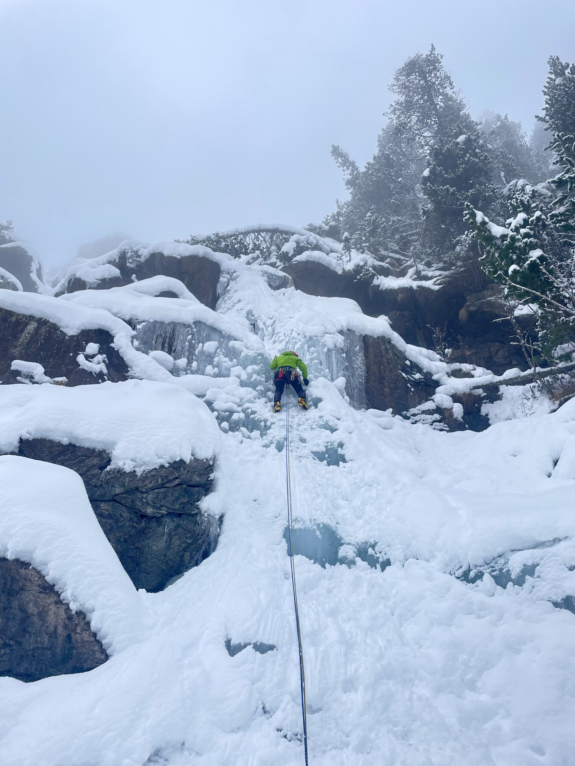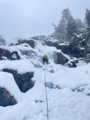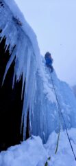 Cascata formata dove si possono tirare due/tre linee. Sulla parte alta a ds (faccia a monte) risalendo la gola presenti un paio di linee, la prima (salendo) offre un bel tiro verticale (nella guida viene indicato come il settore “Fata Turchina”).