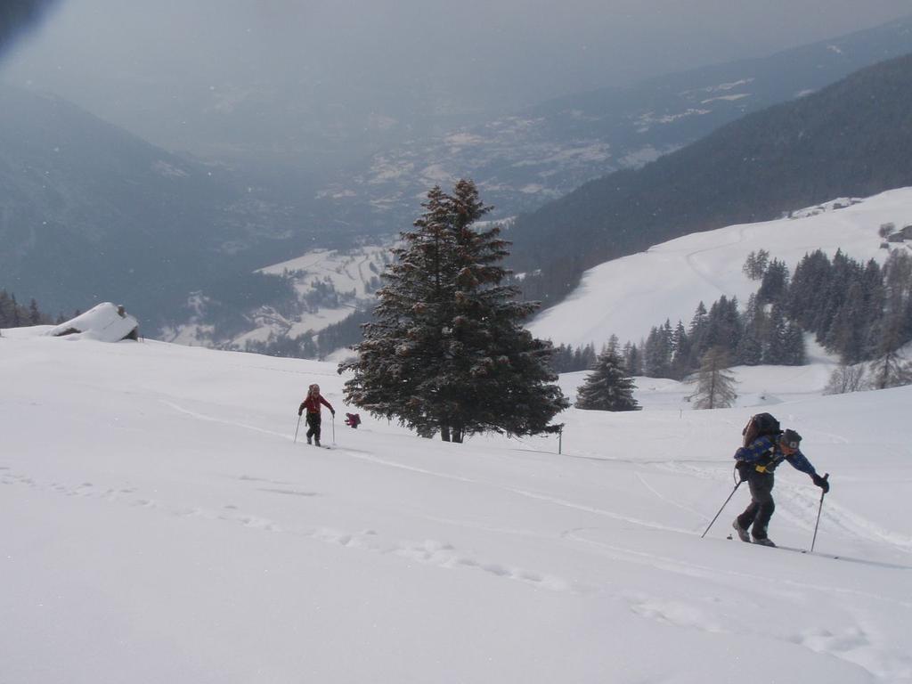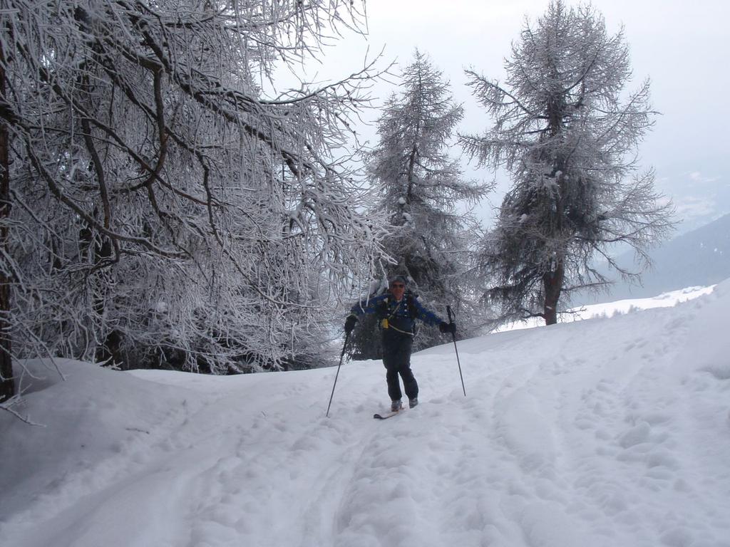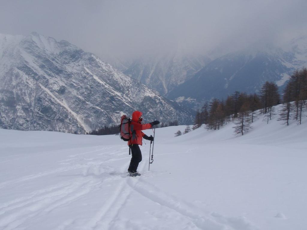L’altro gruppo di Evergreen oggi ha optato per la Vallè.Il meteo dava qualche schiarita che in effetti c’è stata, ma molto sporadica.Partiti con freddo pungente-8-10 alla partenza e a metà ha cominciato a nevicare.La neve caduta copriva appena le tracce precedenti e la parte sotto non ancora trasformata cedeva e non lasciava presagire una grande discesa.La parte alta che andava al colle era tracciata ma noi abbiamo preferito non rischiare.Ci siamo fermati al rifugio un pò per la visibilità un pò per la qualità della neve.In discesa nella prima parte qualche curva si poteva fare e ci potevano stare anche le *** stelle, poi crosta,ultima parte seguito la strada.Da rifare sicuramente con neve trasformata.