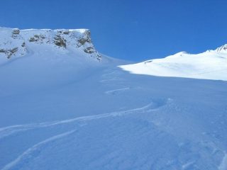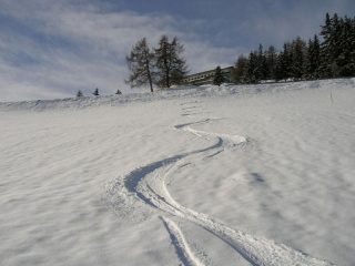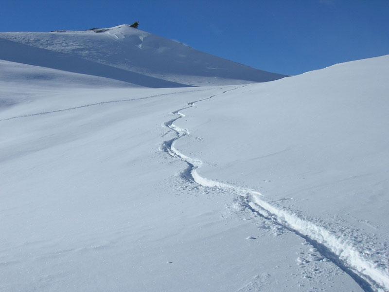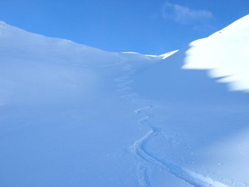 SPETTACOLARE.Assenza di vento.-12 alla partenza alle 9.40 ma il sole caldissimo mi ha permesso di salire in maniche corte senza guanti e berretta e sudare ancora tantissimo fino dopo il bosco!Nessuno in giro solo io e una ciapolara e le tracce fresche di 2 skialp che giunti al colle hanno proseguito per cresta a sx e sono scesi ne lvallone opposto lasciandomi tutti i pendii intonsi per me..cosa chiedere di più?Fuori dal bosco nonostante il sole un freddo micidiale fino in cima,le zone in ombra erano impossibili da starci.Fondo pressochè portante e regolare per tutto il tracciato (tranne un breve tratto nel falsopiano sotto il riugio di crosta non portante) con 5/40cm di polvere leggerissima.Prati inferiori ben sciabili sciegliendo i pendii più uniformi.Da “pisesi dos” oggi.gita più che indovinata