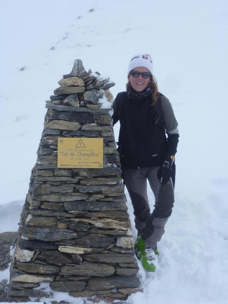 Partenza intorno alle 9 dalla frazione Chatelair dove termina la strada pulita. Il cielo è limpido ma la meteo dice peggioramento nel pomeriggio. Decidiamo di salire nel bosco seguendo l’itinerario della gara in programma il giorno di S. Stefano sfruttando la bella traccia segnalata con le bandierine. Usciamo dal bosco nel vallone che porta verso la Crou de Bleintze e ci dirigiamo sulla destra verso un ripido e breve pendio che porta al punto più basso della cresta che ci separa dall’ampio vallone di Champillon. Togliamo le pelli e ci godiamo un centinaio di metri di discesa nella polvere e, rimesse le pelli, riprendiamo la traccia di salita verso il colle di Champillon. Nel frattempo il cielo comincia a velarsi ma la neve è favolosa e la visibilità è comunque buona. Arriviamo al rifugio poi attraverso un tratto più ripido si giunge al colle. Il tempo comincia a peggiorare ma riusciamo comunque a toglierci lo sfizio di una bella discesa in una polvere a tratti un po’ “spessa” però godibilissima da cima a fondo, passando per gli ampi pendii aperti del vallone di Champillon. Breve sosta ristoratrice e arriviamo alla macchina giusto in tempo per veder cadere i primi fiocchi di neve.