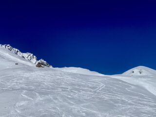 Giornata spaziale, non troppo fredda e assenza di vento. Oggi molta gente in giro. Tratti ancora intonsi, ma dopo di me ancora molto Skialp in giro