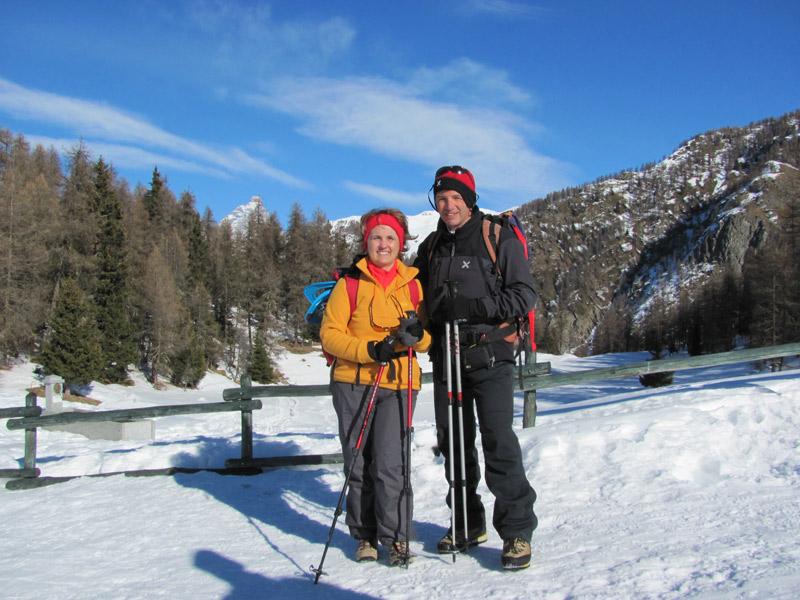 Abbiamo lasciato l’auto al tornante che precede il villaggio di Artaz e siamo saliti lungo la strada asfaltata fino a circa 1800 metri dove abbiamo trovato la neve. Non abbiamo dovuto mettere le racchette in quanto la traccia era ben battuta e gelata. Molto bello e rilassante il percorso nel bosco fino al colle Pilaz (1975 m.). Io e mia moglie Patrizia ci siamo fermati per circa 1 ora e 30 minuti in una baita nei pressi del colle dove abbiamo usufruito di un bel sole caldo. Discesa per la poderale, passando vicino al lago Croux, fino a raggiungere il villaggio di Artaz ed il luogo di partenza. Itinerario circolare, non faticoso, adatto a tutti e percorribile anche dopo nevicate.